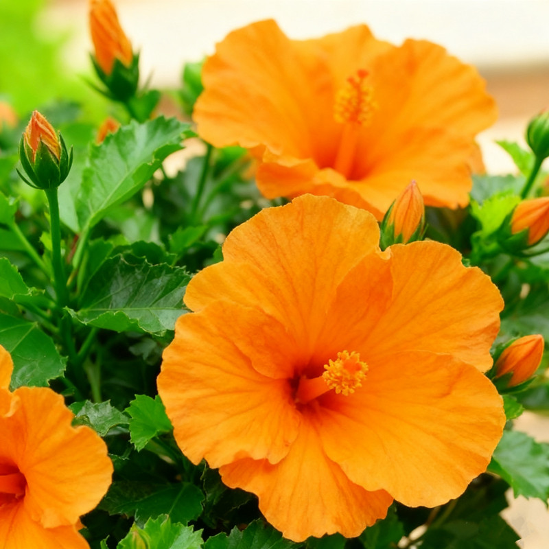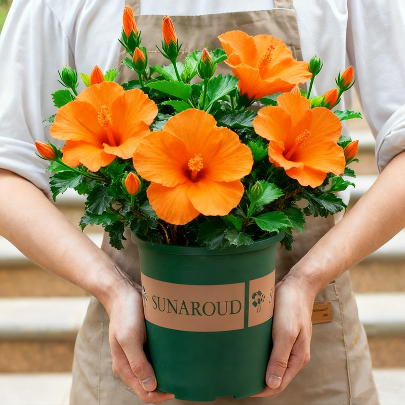 📚 橘色朱槿花盆栽带花苞阳台室外庭院开花植物绿植四季花卉扶桑花苗