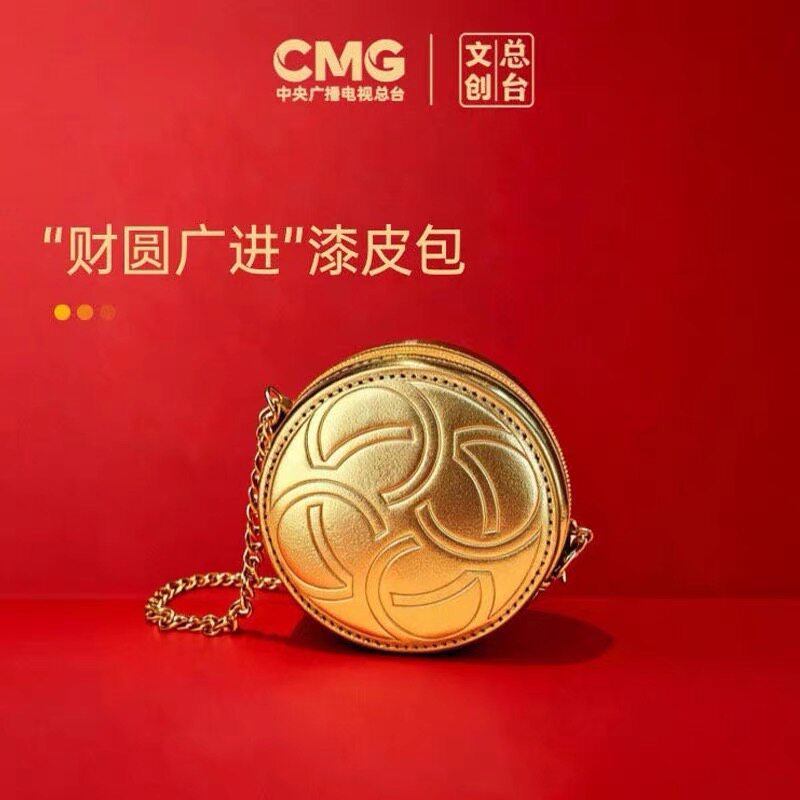 📚 总台文创2026“财圆广进”漆皮包新年礼物包包挂件装饰