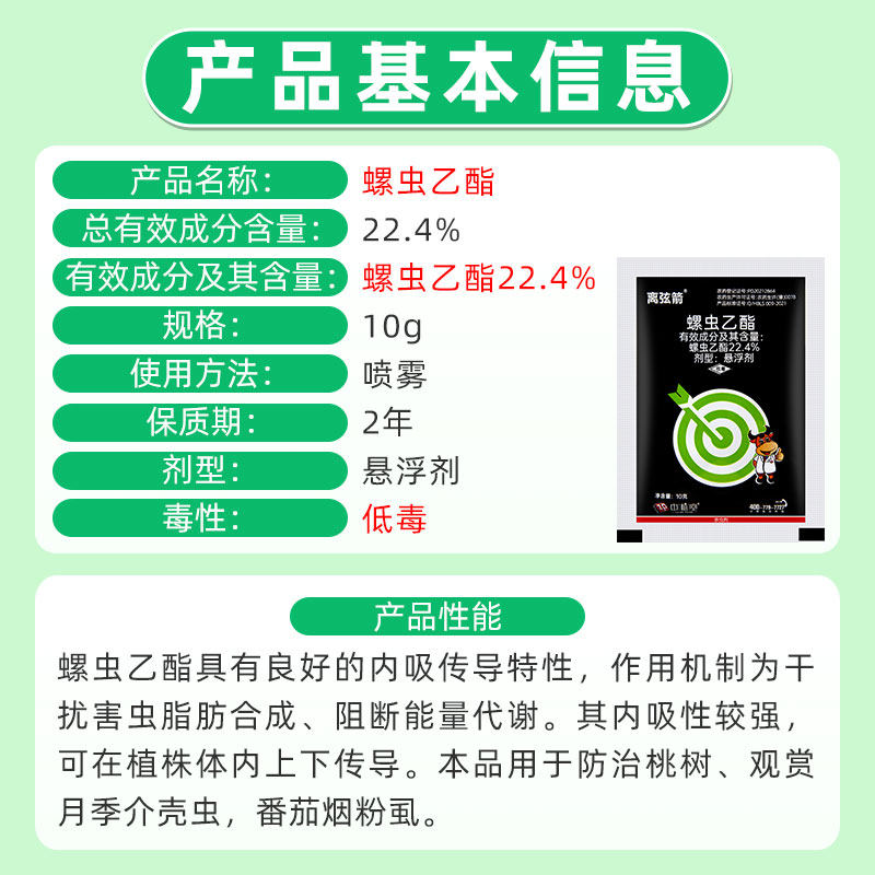📚 22.4%螺虫乙酯 柑橘月季介壳虫蚜虫白粉虱梨木虱离弦箭农药杀虫剂