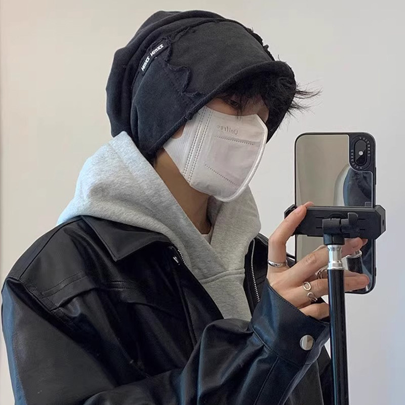 📚 梓渝同款水洗做旧堆堆帽男显脸小时髦高街美式冷帽黑色四季包头帽