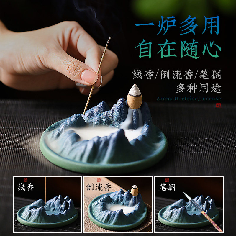 📚 创意倒流香香炉陶瓷檀香熏香炉沉香线香底座家用香立香插禅意摆件