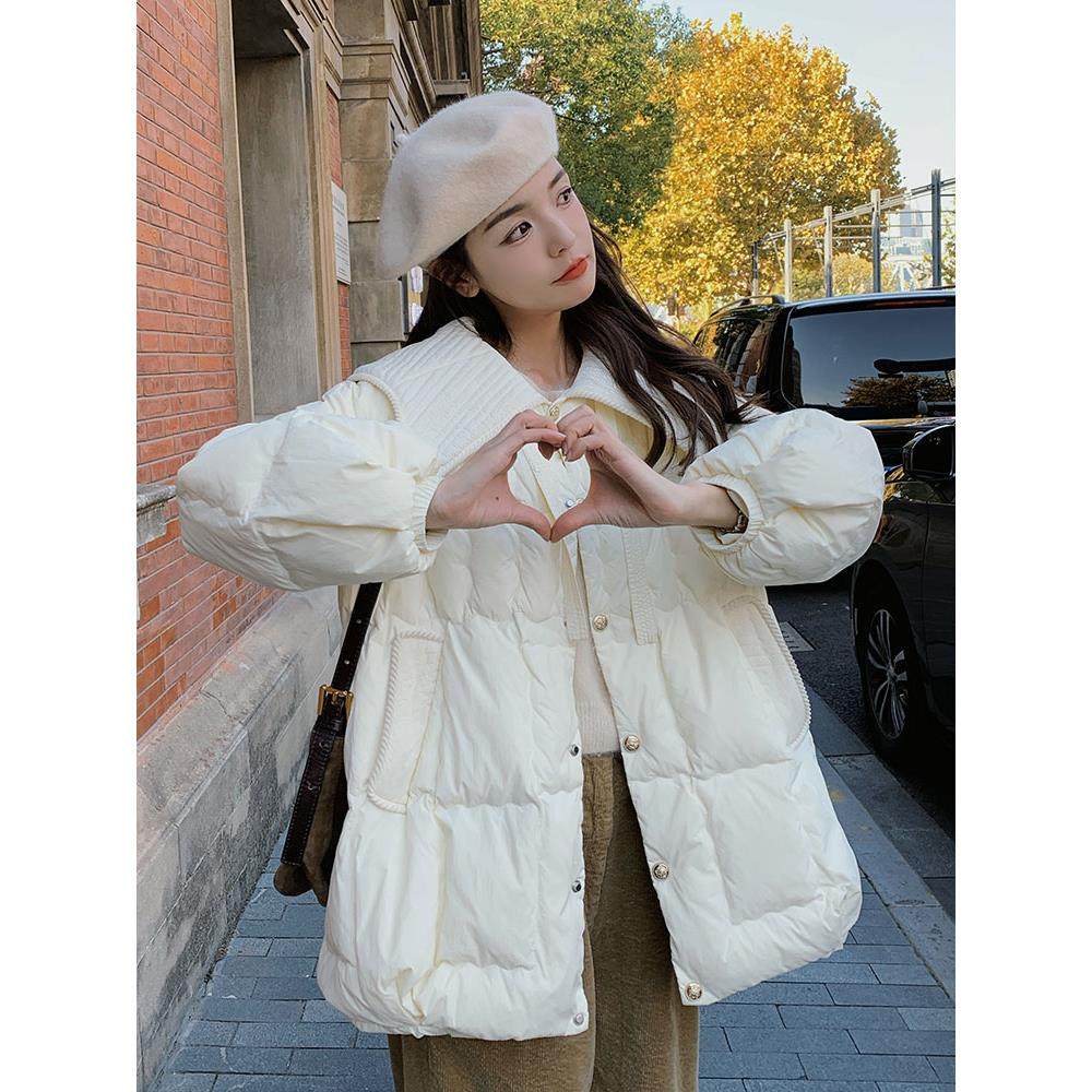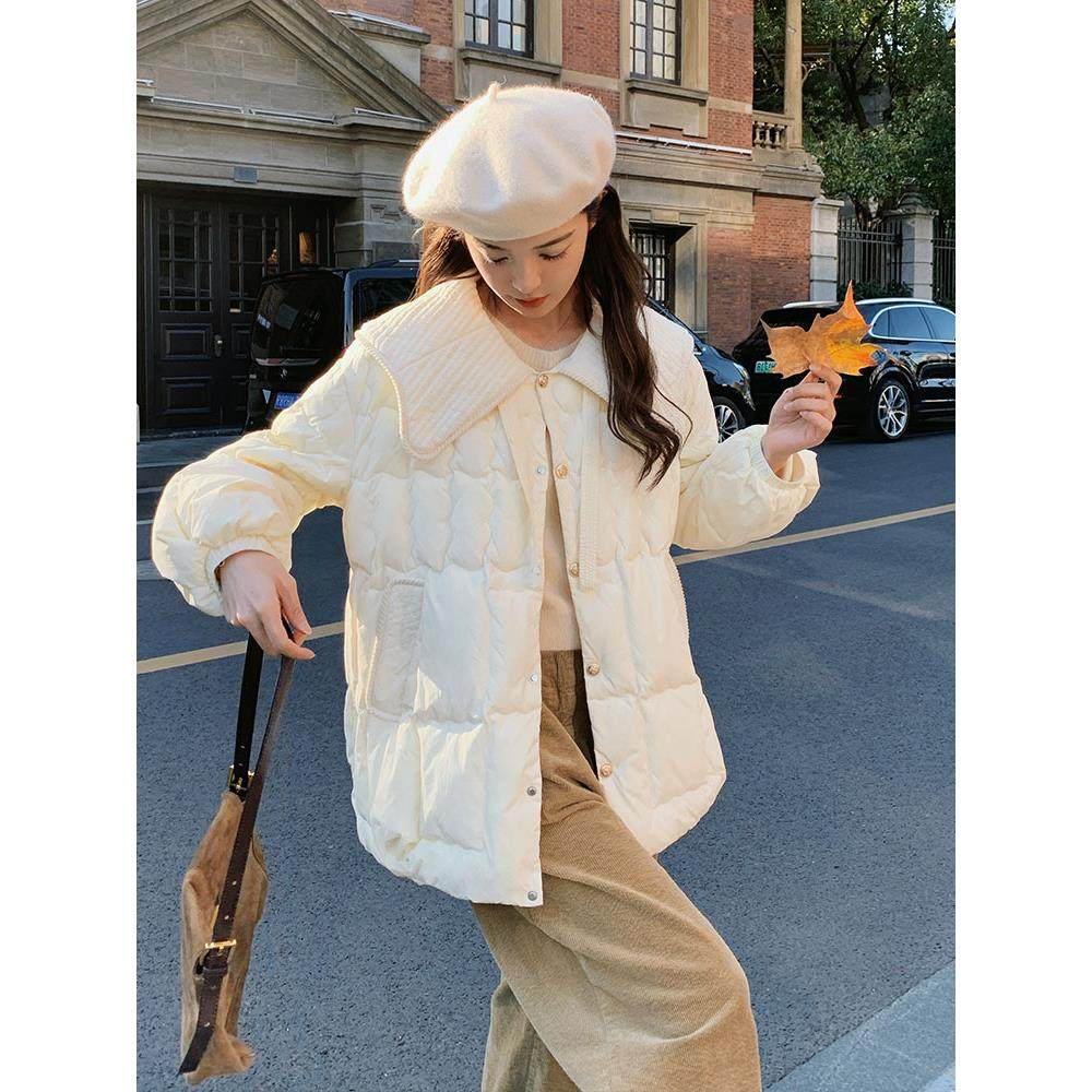 📚 白色娃娃领羽绒服女冬季2024新款学院风可爱宽松轻薄款白鸭绒外套
