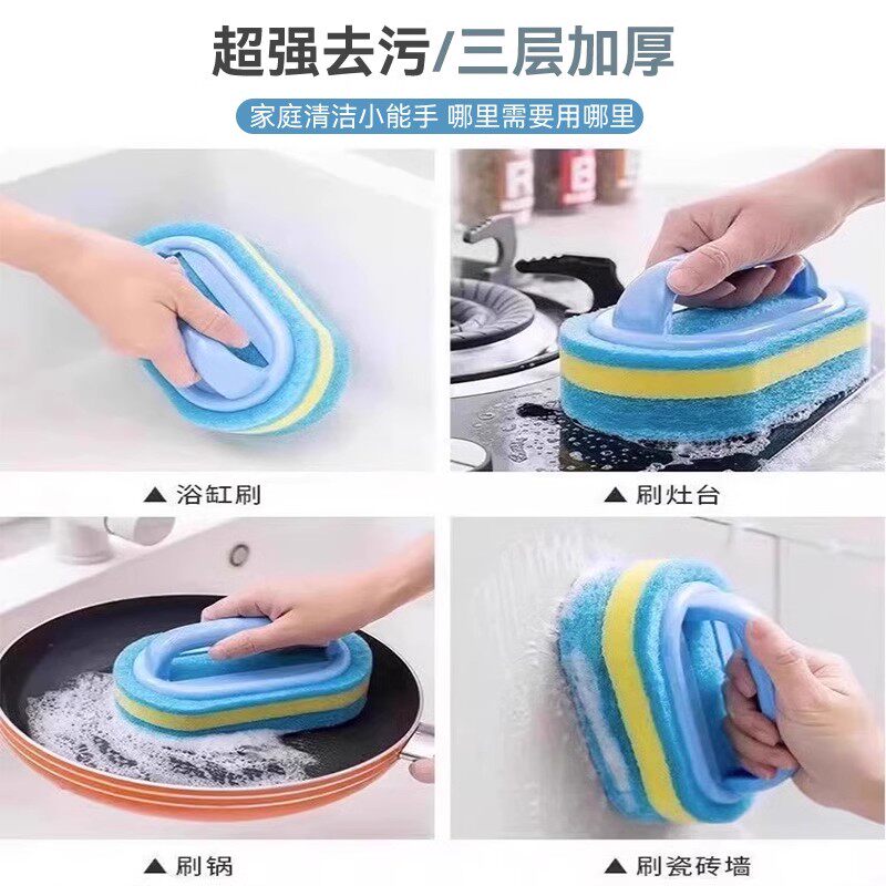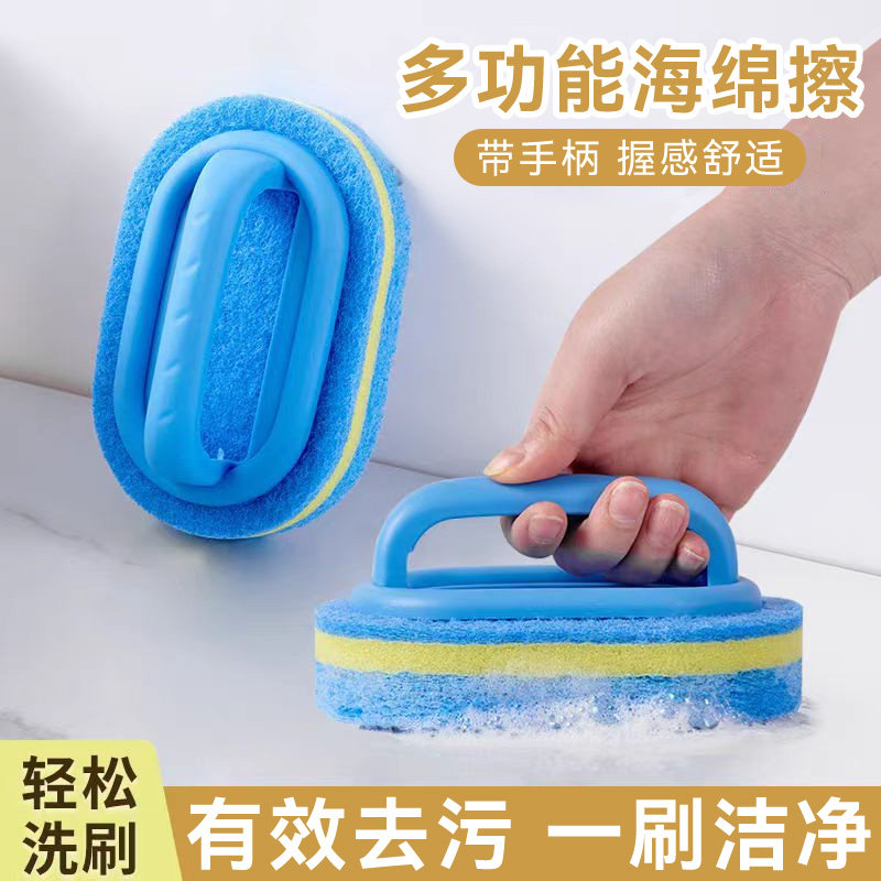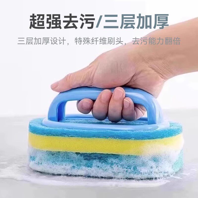 📚 带手柄浴缸刷海绵刷子卫生间瓷砖墙面清洁刷家用洗澡盆魔力海绵擦