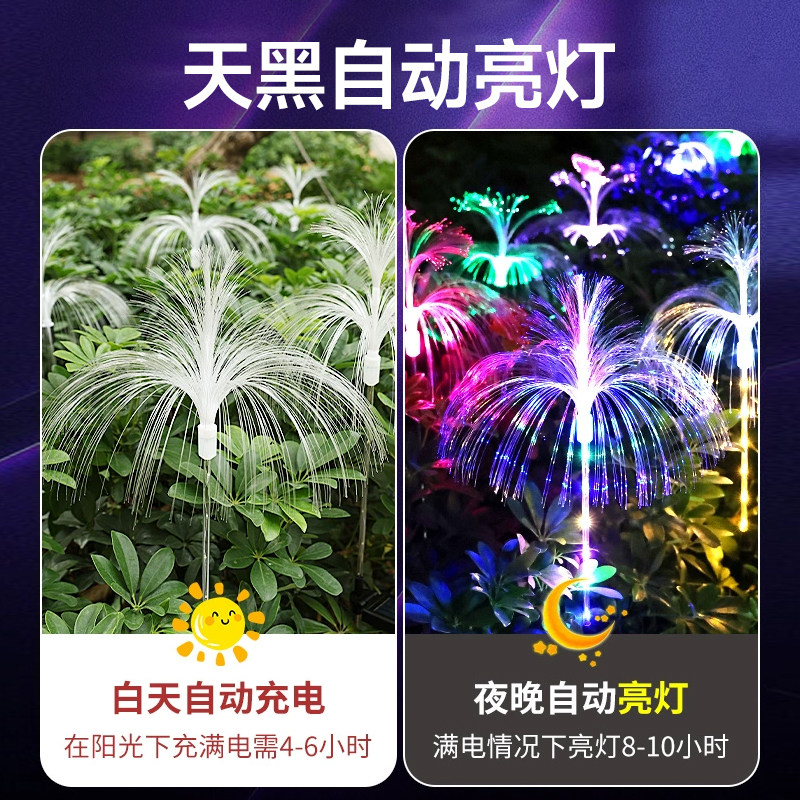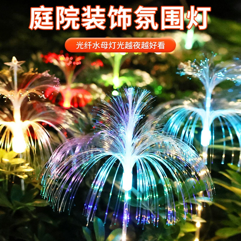 📚 太阳能水母灯七彩变色光纤网红灯户外防水庭院阳台花园地插草坪灯