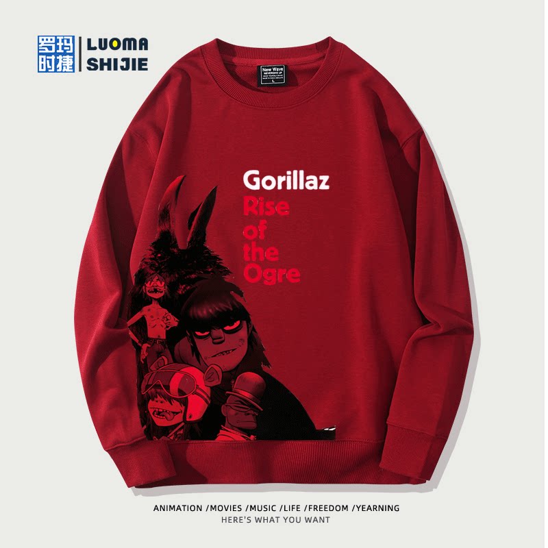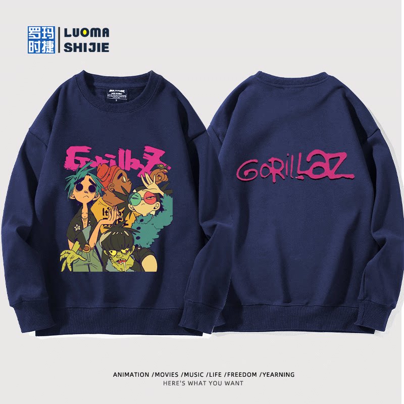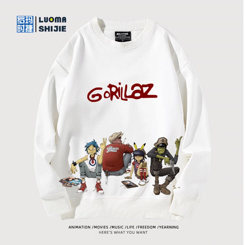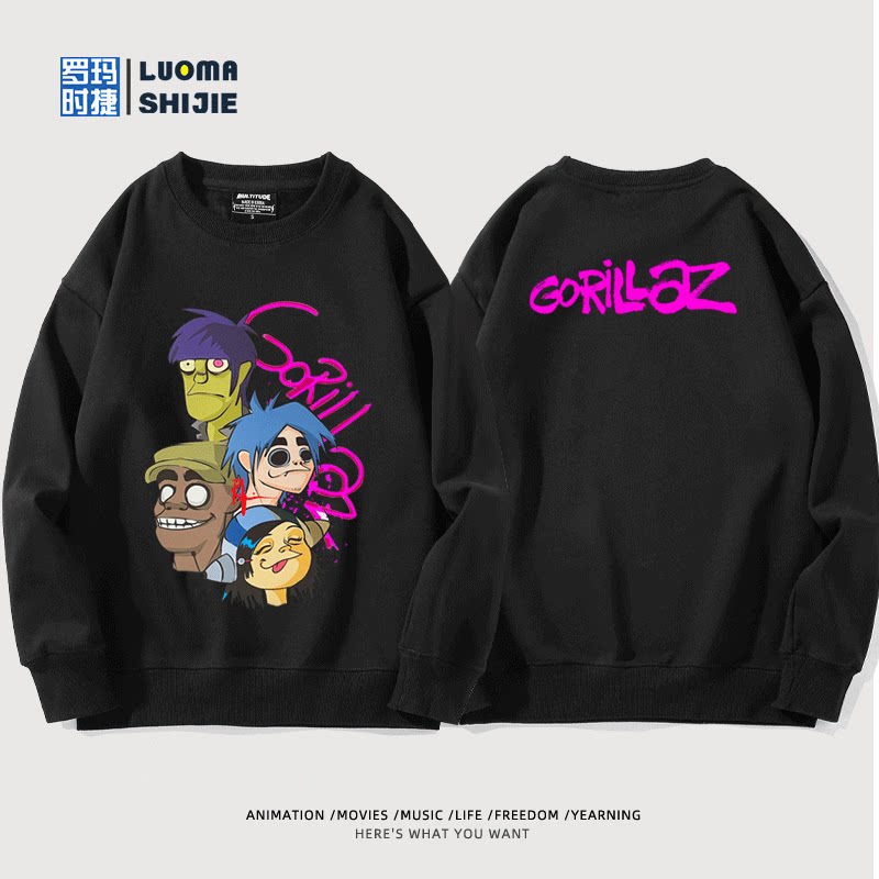 📚 街头霸王Gorillaz乐队联名周边圆领卫衣男女秋冬日系加绒百搭衣服