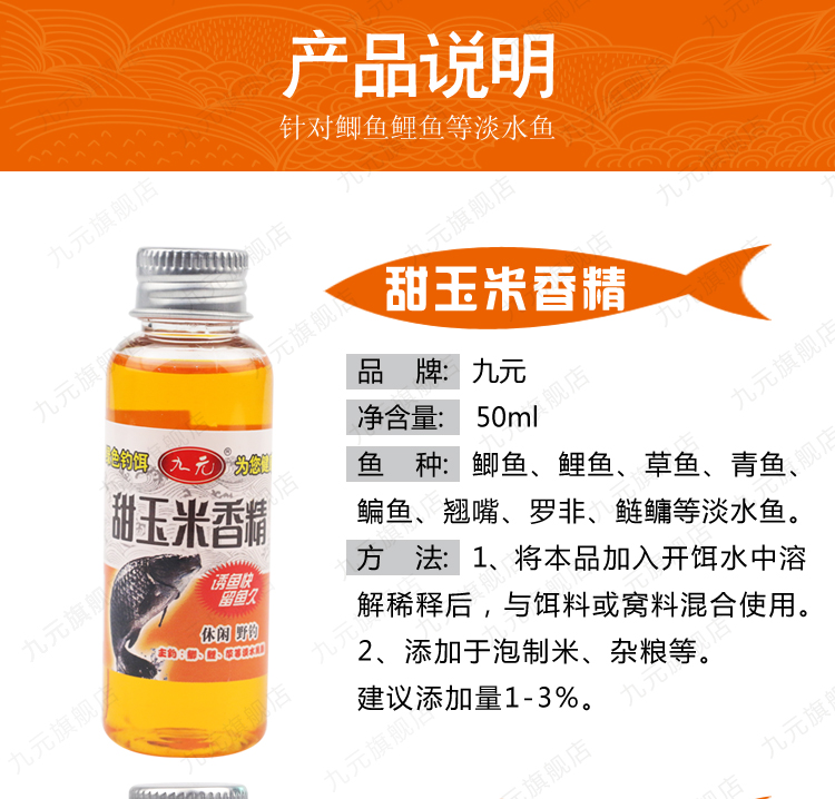 📚 九元甜玉米香精麝香王水剂高浓缩小药药酒钓鱼饵料添加剂黑坑小药
