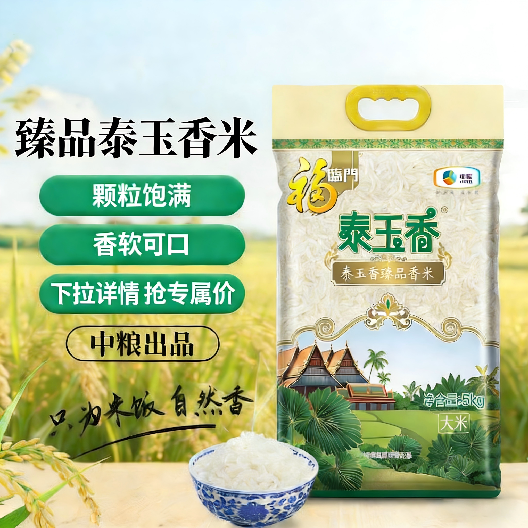 📚 福临门中粮泰玉香臻品茉莉香米5kg新米发货10斤软糯香甜米香浓郁