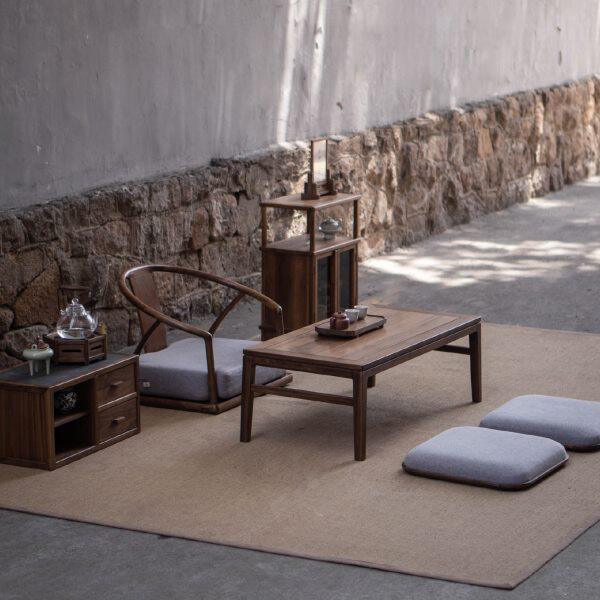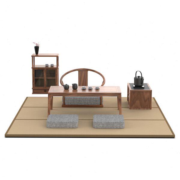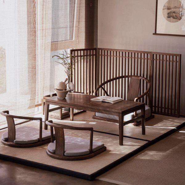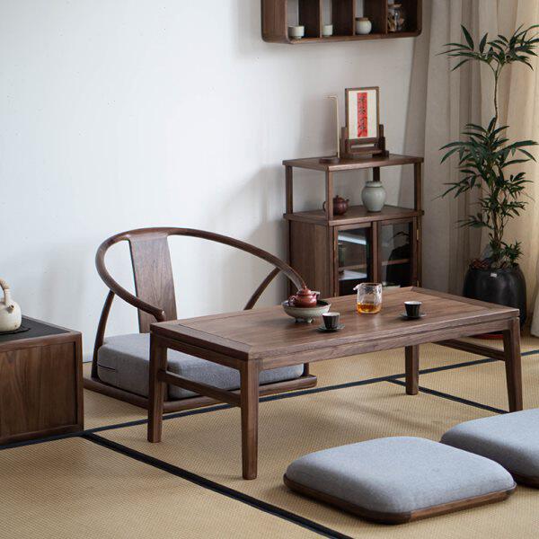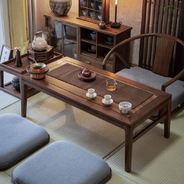 📚 新中式席地茶桌榻榻米禅意北美黑胡桃木炕桌飘窗阳台茶室家具组合
