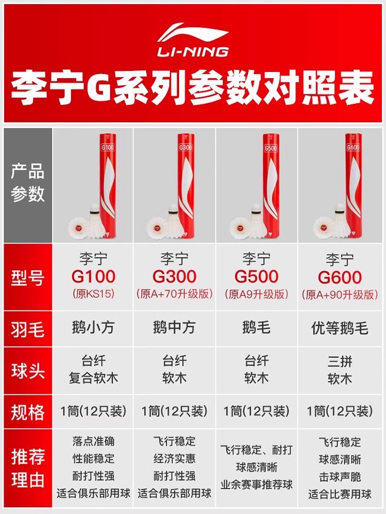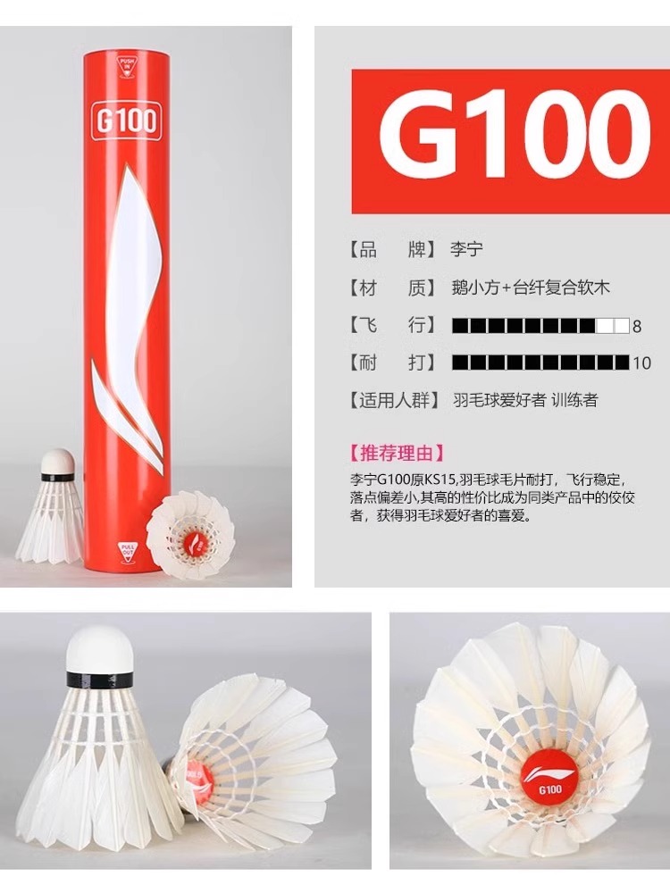 📚 李宁G200正品鹅毛羽毛球鸭G600耐打G100飞行稳定C50比赛训练羽球