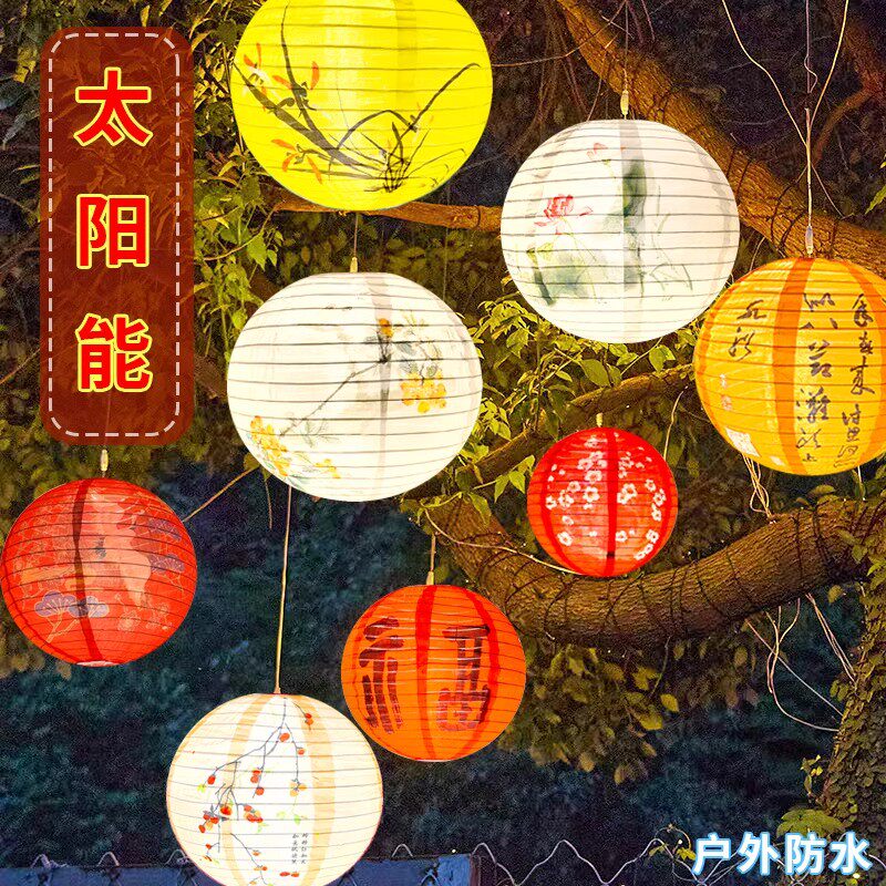 📚 2025新款户外灯笼太阳能防水防晒折叠发光布灯笼屋檐场景布置装饰