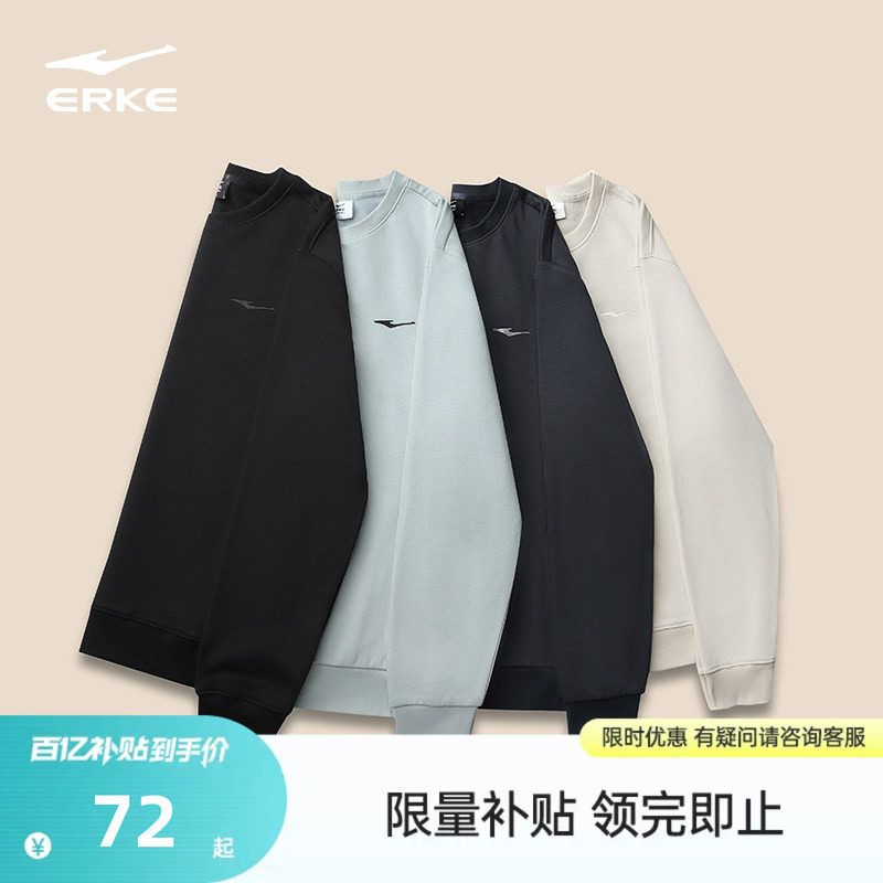 📚 鸿星尔克卫衣男款春季新款男士男生运动圆领长袖上衣爸爸男装衣服