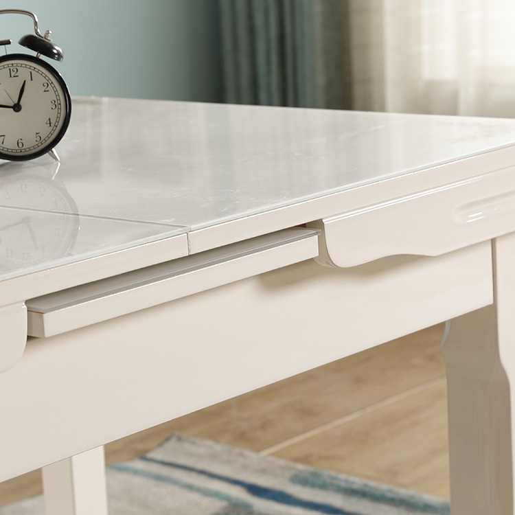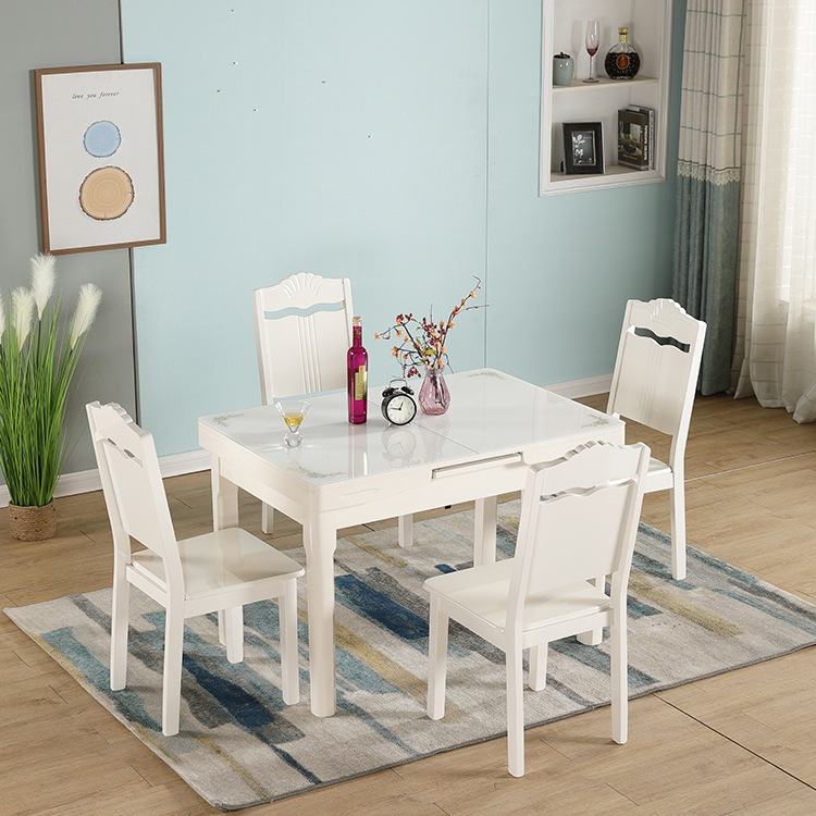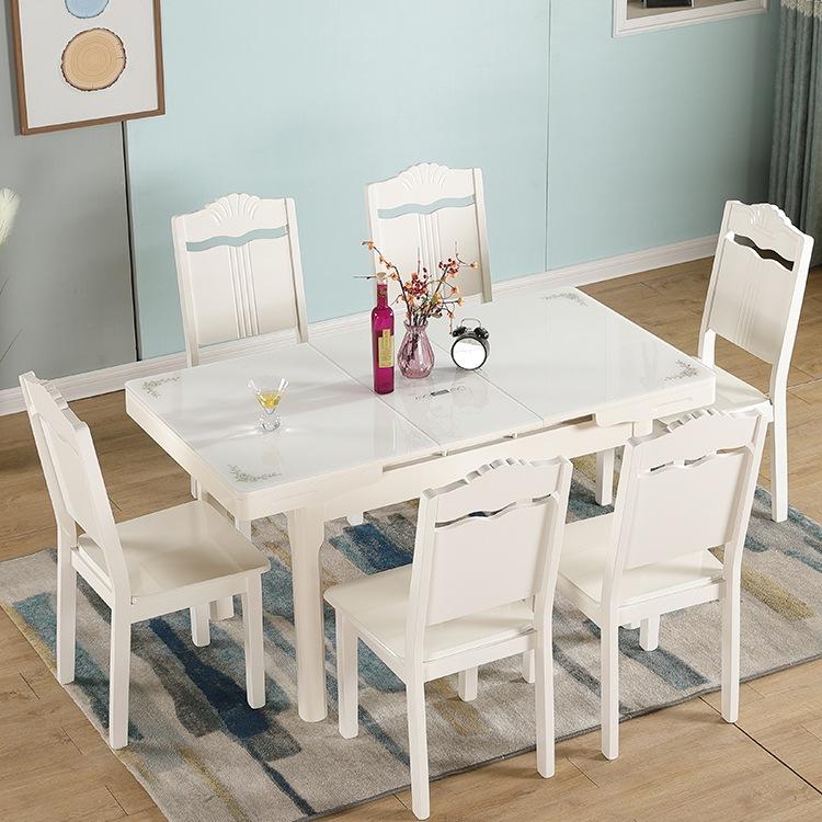 📚 伸缩餐桌小户型家用现代简约白色烤漆抽拉式桌椅组合钢化玻璃rω