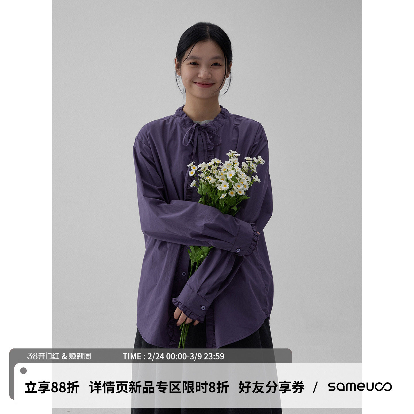 📚 sameuoo散养文化木耳边长袖衬衫女春日系中性风衬衣上衣外套