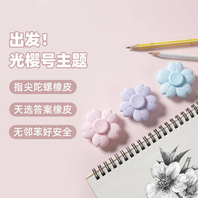 📚 晨光樱花橡皮擦旋转创意出发光樱号指尖陀螺趣味答案橡皮樱花造型益智舒适易握解压无邻苯小学生963WU文具