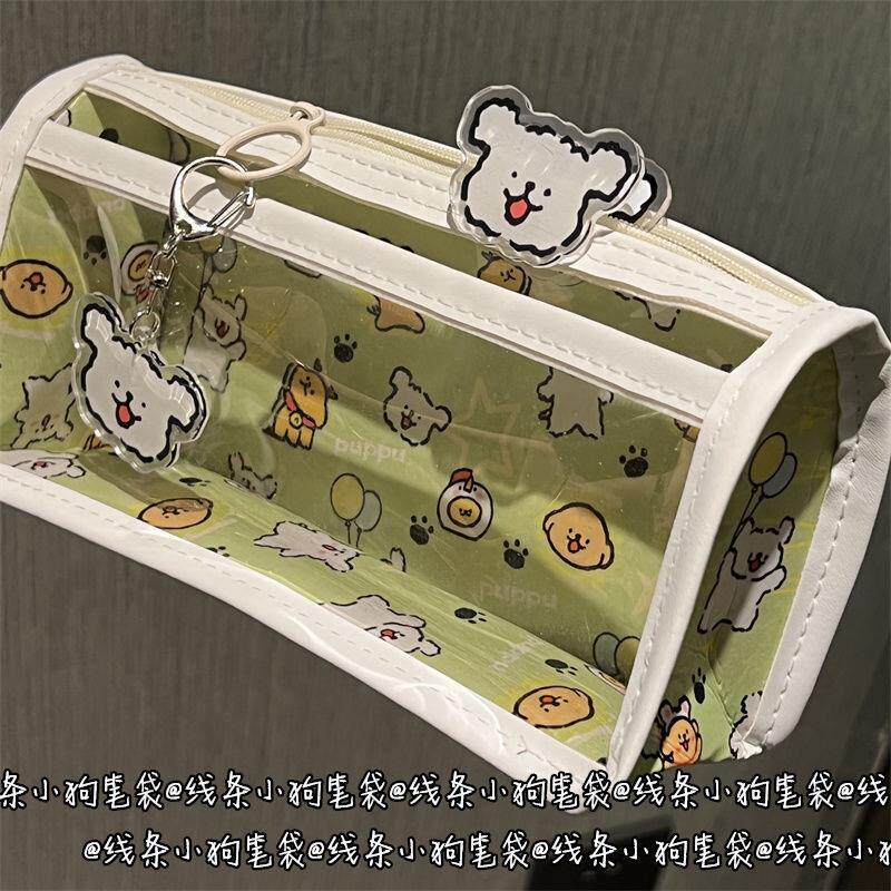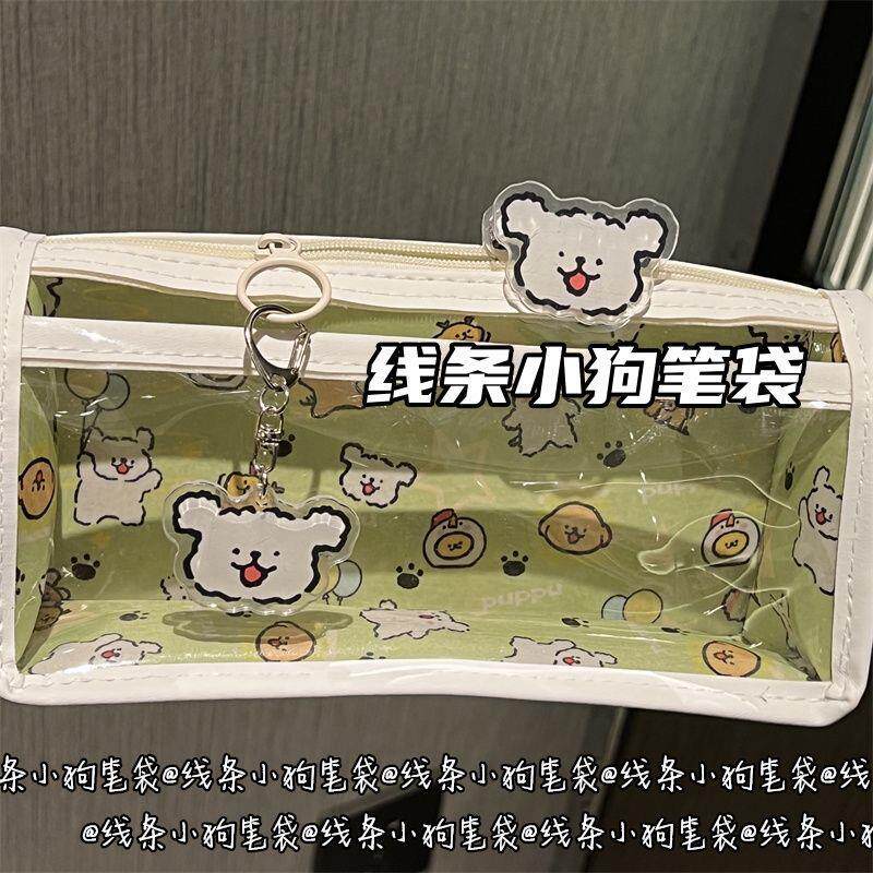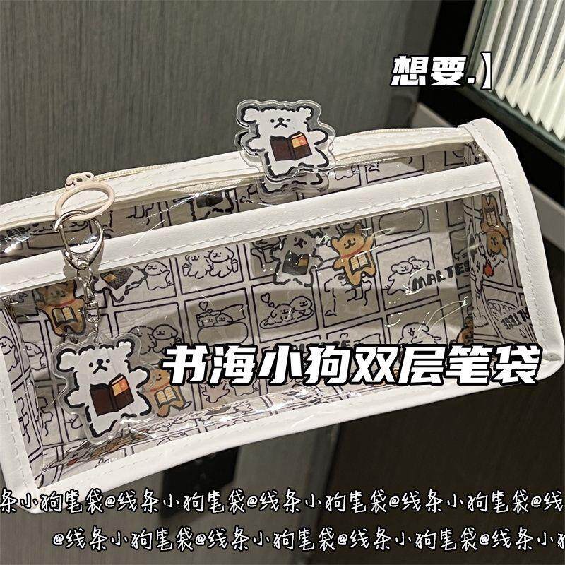📚 书海线条小狗透明双层笔袋高颜值可爱ins风学生大容量女生文具袋