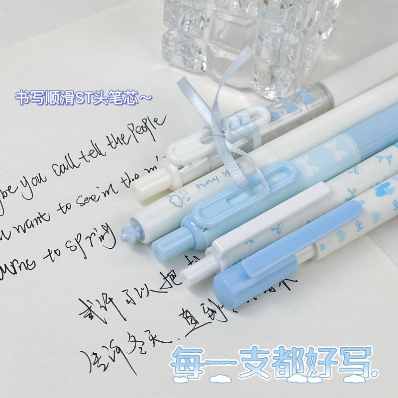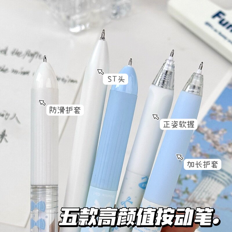 📚 蓝色系ins风按动中性笔高颜值学生考试专用0.5黑色速干顺滑刷题笔