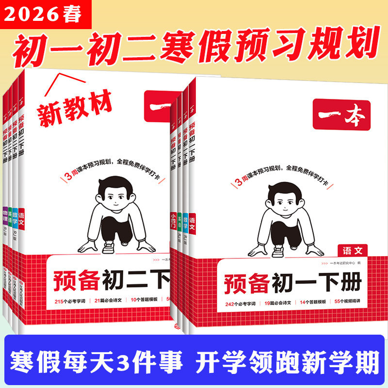 📚 2026春一本预备新初一下册预备新初二寒假预习七年级八年级预习笔记初中语文数学英复习资料书练习题教材同步基础知识练习册教辅书