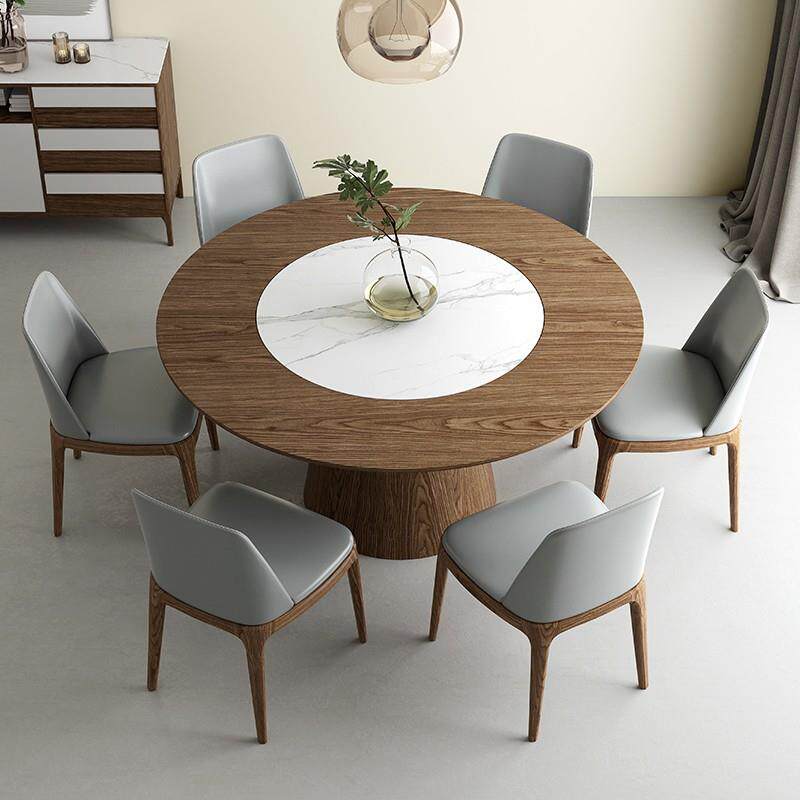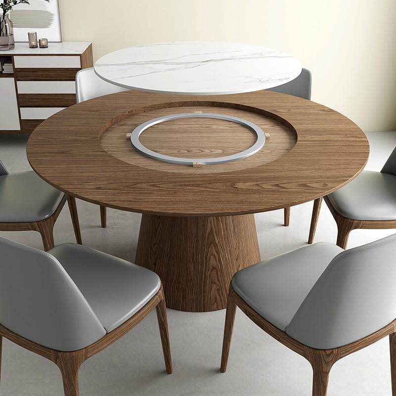 📚 北欧实木大圆桌12人家用白蜡木十人位圆形餐桌简约内嵌带转盘桌子