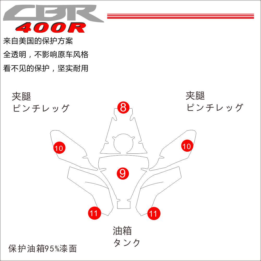📚 适用本田CBR400R摩托车大灯贴纸油箱贴改装防摔透明鱼骨贴保护膜