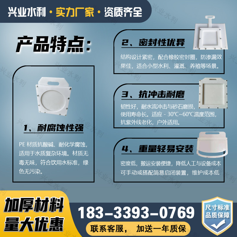 📚 手提闸门插板阀渠道水沟挡水稻田农田排水灌溉树脂手动PE塑料闸门