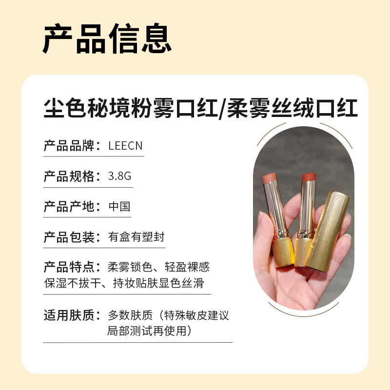 📚 LEECN口红小金管尘色秘境不沾杯粉雾显白丝滑裸感水润小金管口红