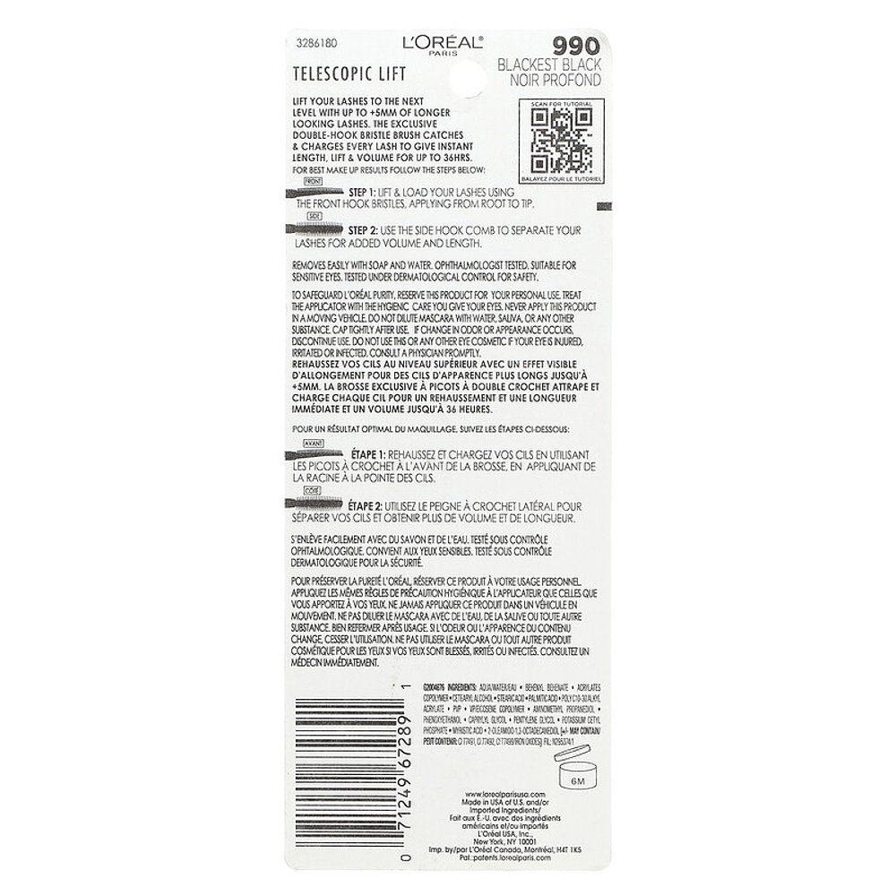 📚 香港直邮欧莱雅,Telescopic Lift Mascara, 990 Blackest Bl正品