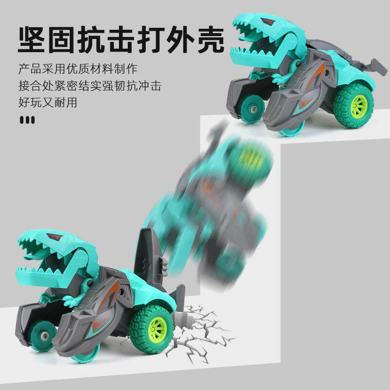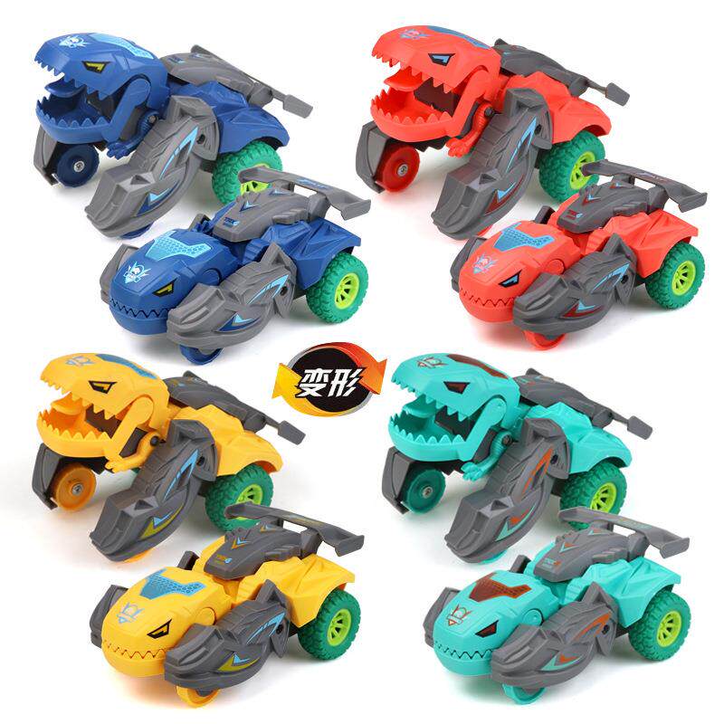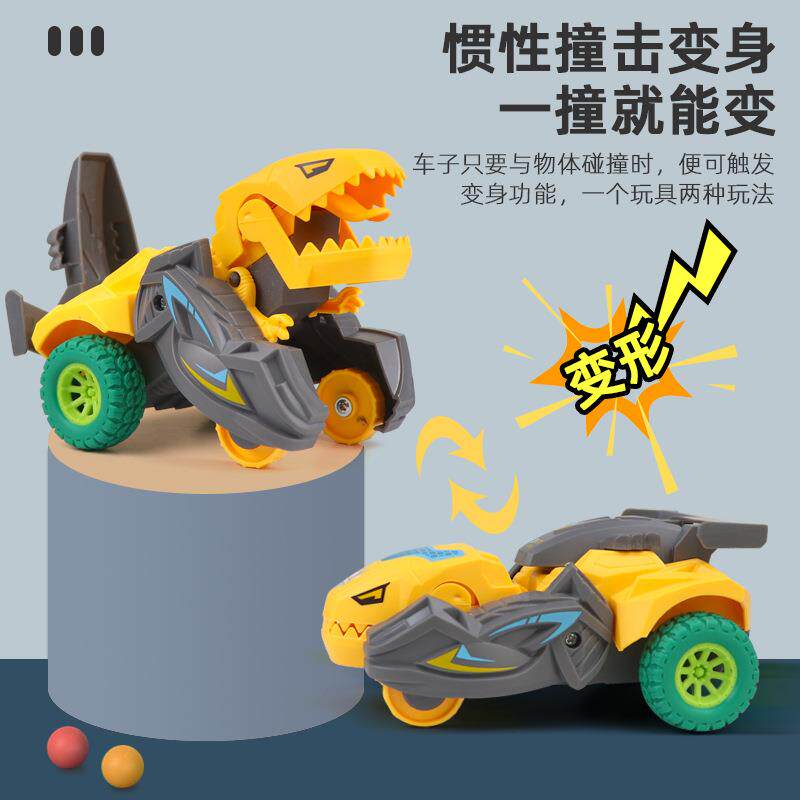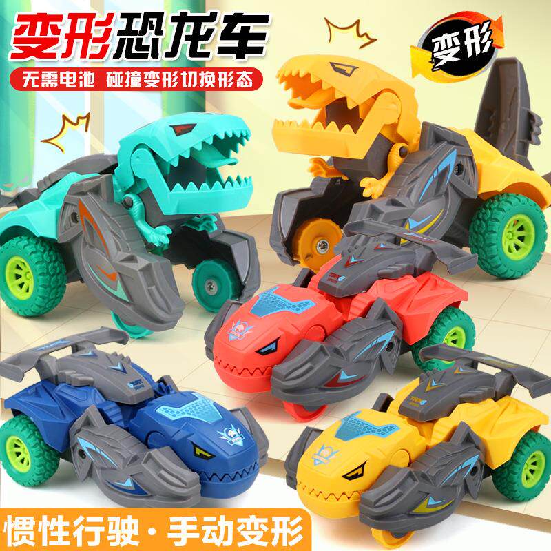 📚 撞击变形恐龙玩具车儿童惯性小汽车耐摔可旋转赛车男孩玩具车礼物