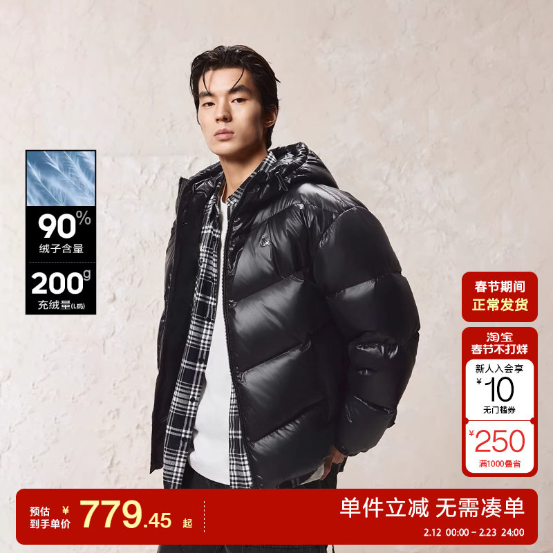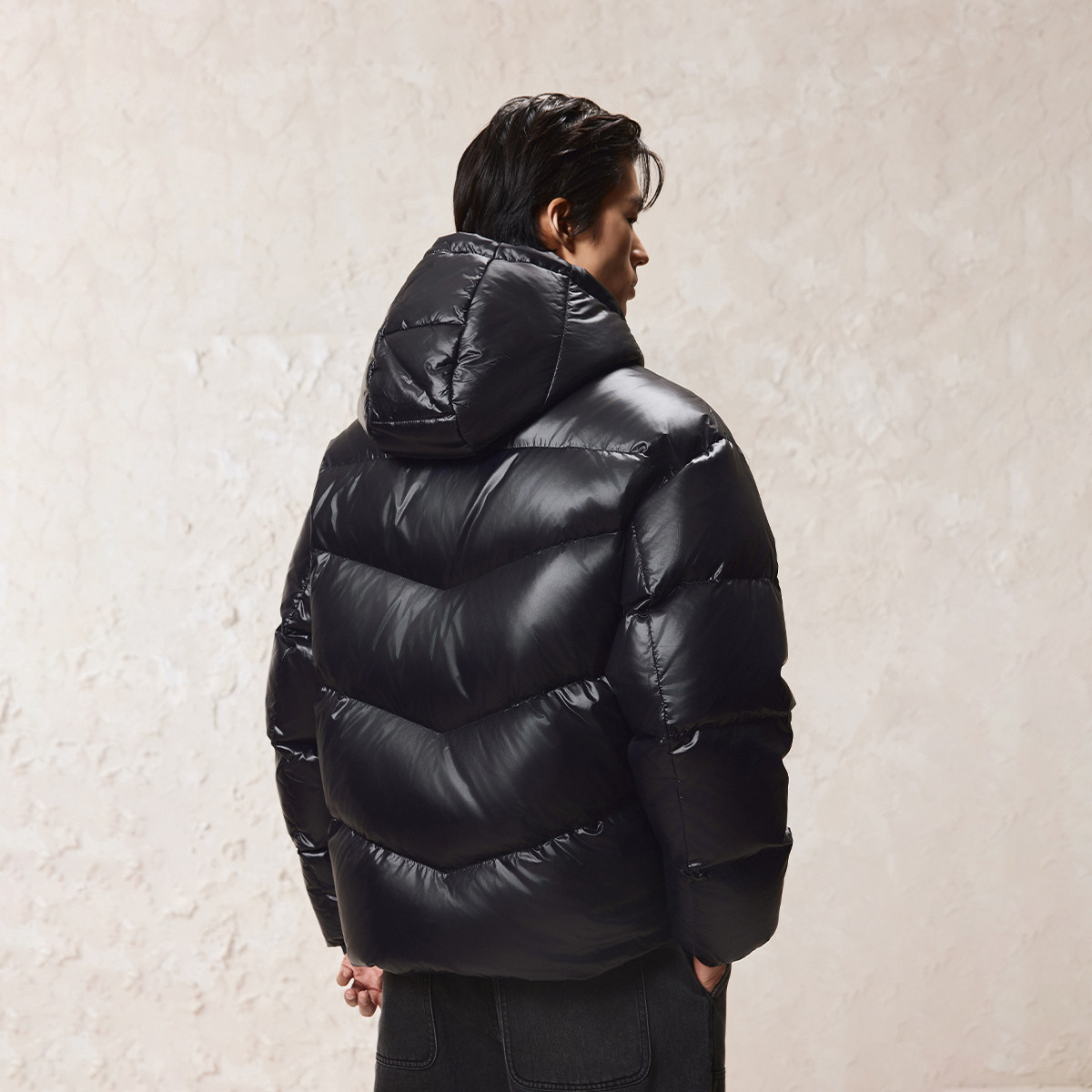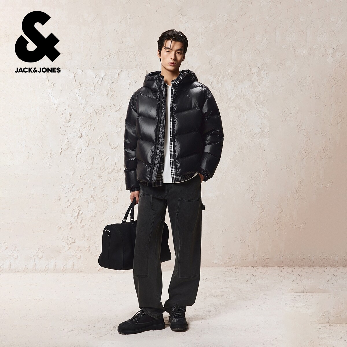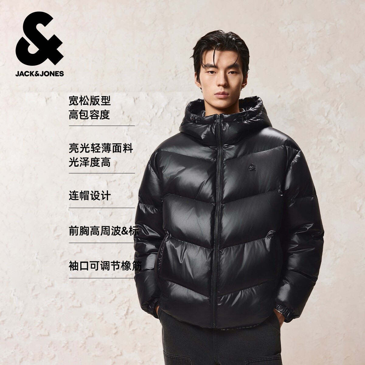 📚 绫致杰克琼斯男冬季纯黑色高蓬松亮光轻薄宽松立领羽绒服外套