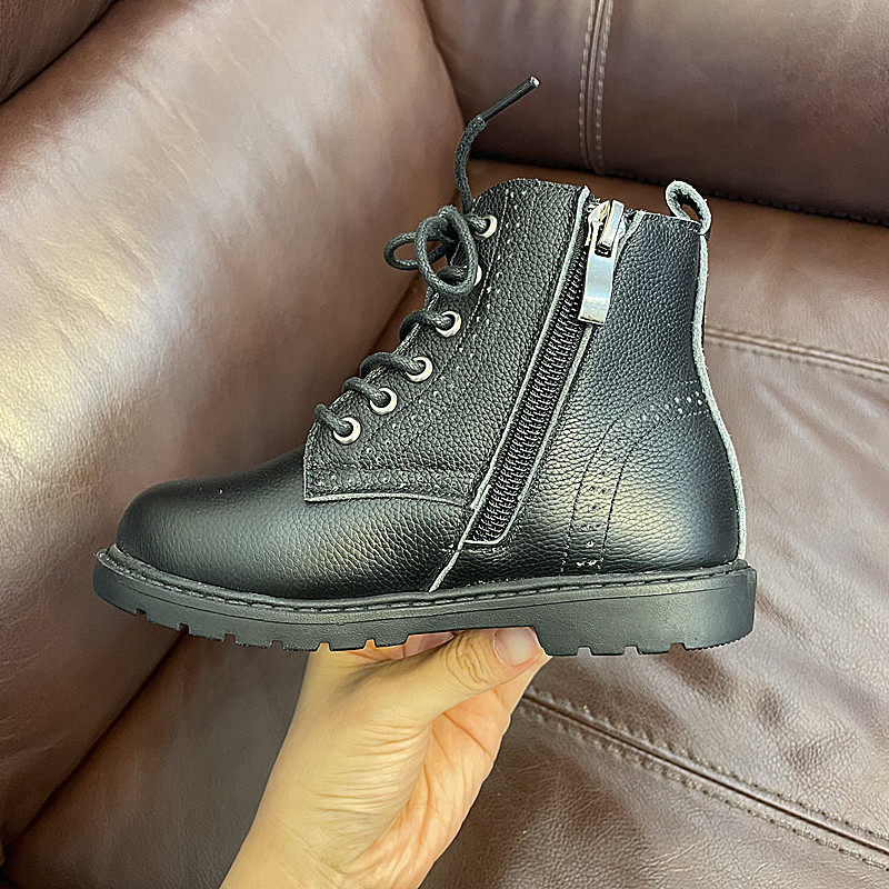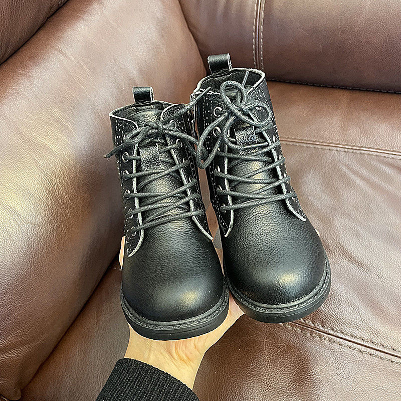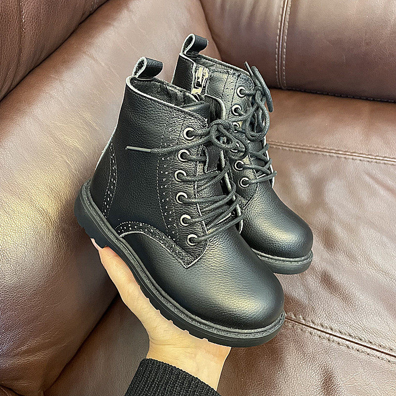 📚 清仓不退换女童马丁靴皮靴男童真皮短靴儿童英伦风靴保暖加绒童靴