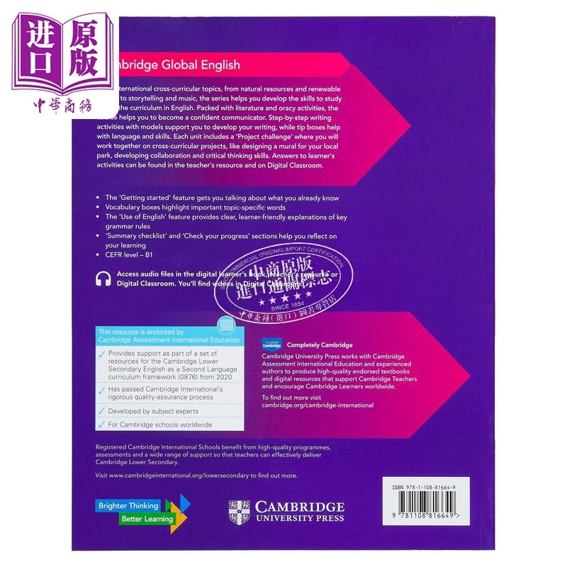 📚 Cambridge Global English Learners Book 8 Lower Secondary ESL 剑桥全球英语学习者 第八册 含电子版【中商原版】