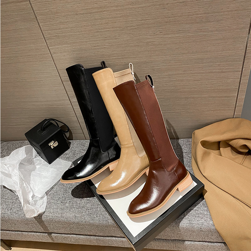 📚 【特价断码清仓】会员福利价骑士靴女圆头中筒靴侧面长筒靴西部靴
