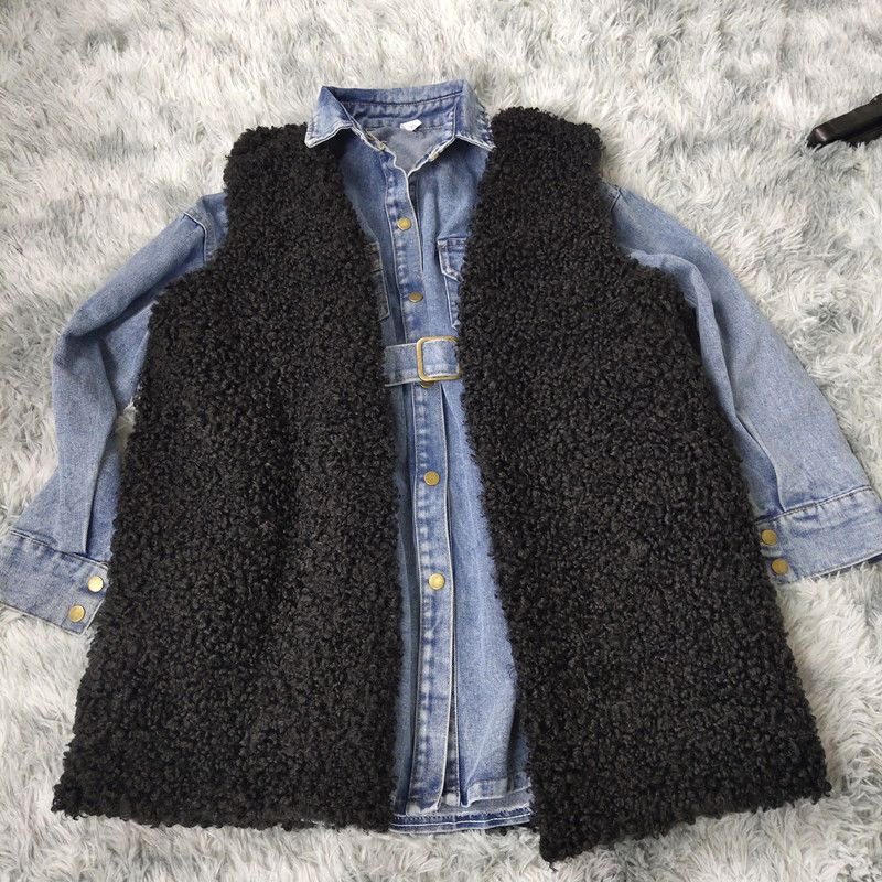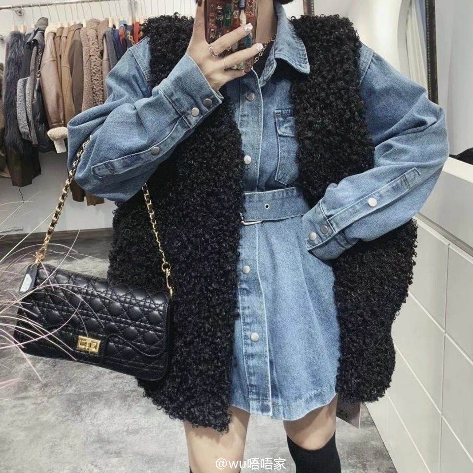 📚 欧货25冬装仿皮草马甲羊羔毛加厚中长款外套羊卷毛百搭宽松背心潮