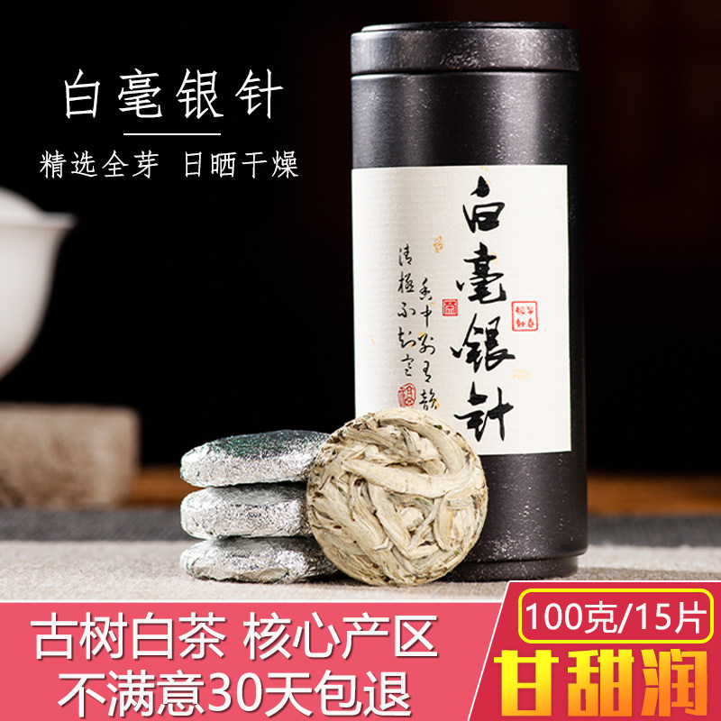 📚 云南白毫银针小饼普洱白茶月光白纯料圆饼冰岛甜礼盒散茶100g罐装