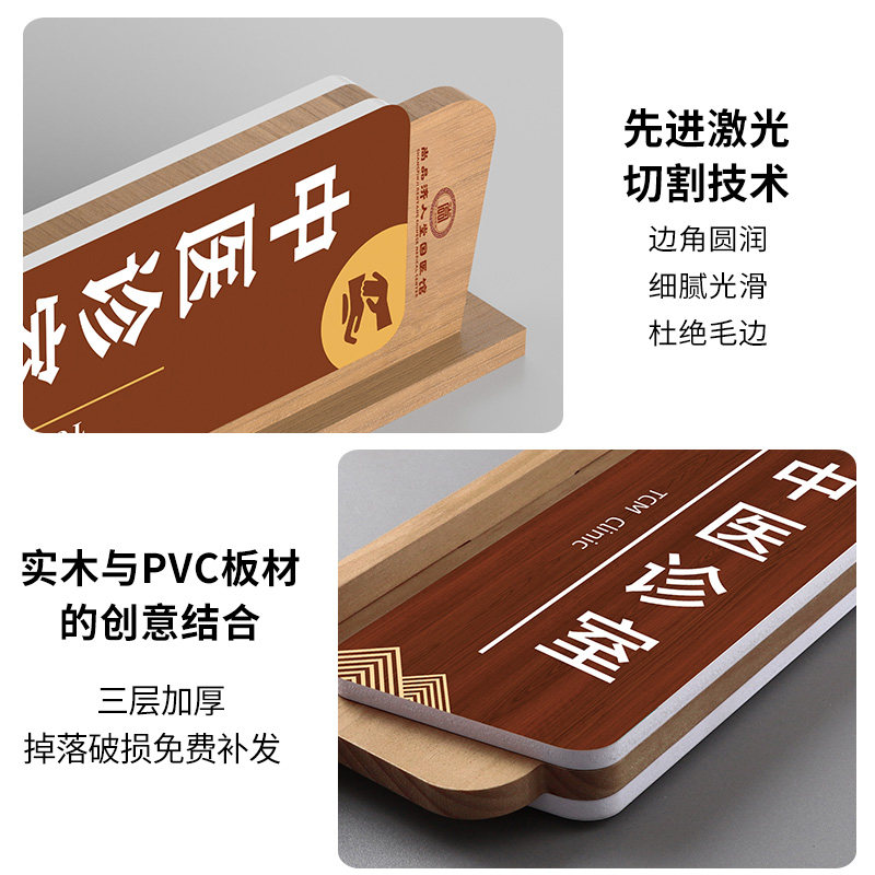 📚 实木加厚中医诊所门牌理疗针灸推拿室养生馆科室牌医院专家诊室侧挂可更换式标识牌眼科牙医门诊木质门牌定制