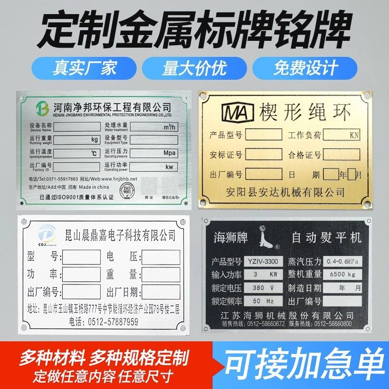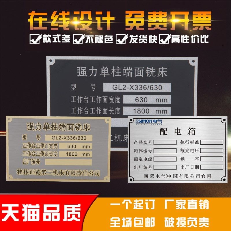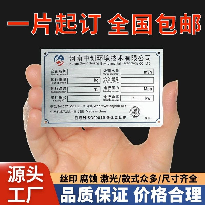 📚 铝板不锈钢铭牌定做铝牌制作铝制公司腐蚀铁牌定制电气配电箱白钢标牌设备面板合格证标识牌铜牌激光雕刻牌子