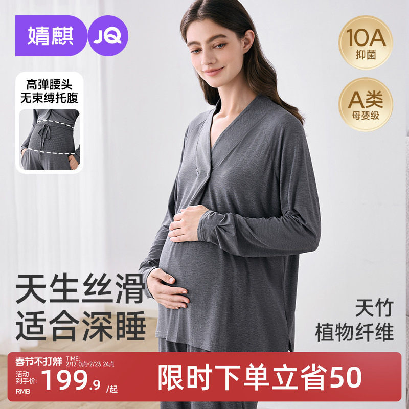 📚 婧麒竹纤维月子服产后春夏孕妇睡衣哺乳喂奶待产怀孕期家居服套装