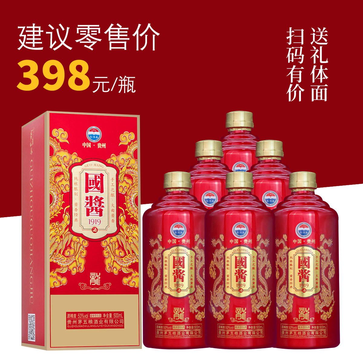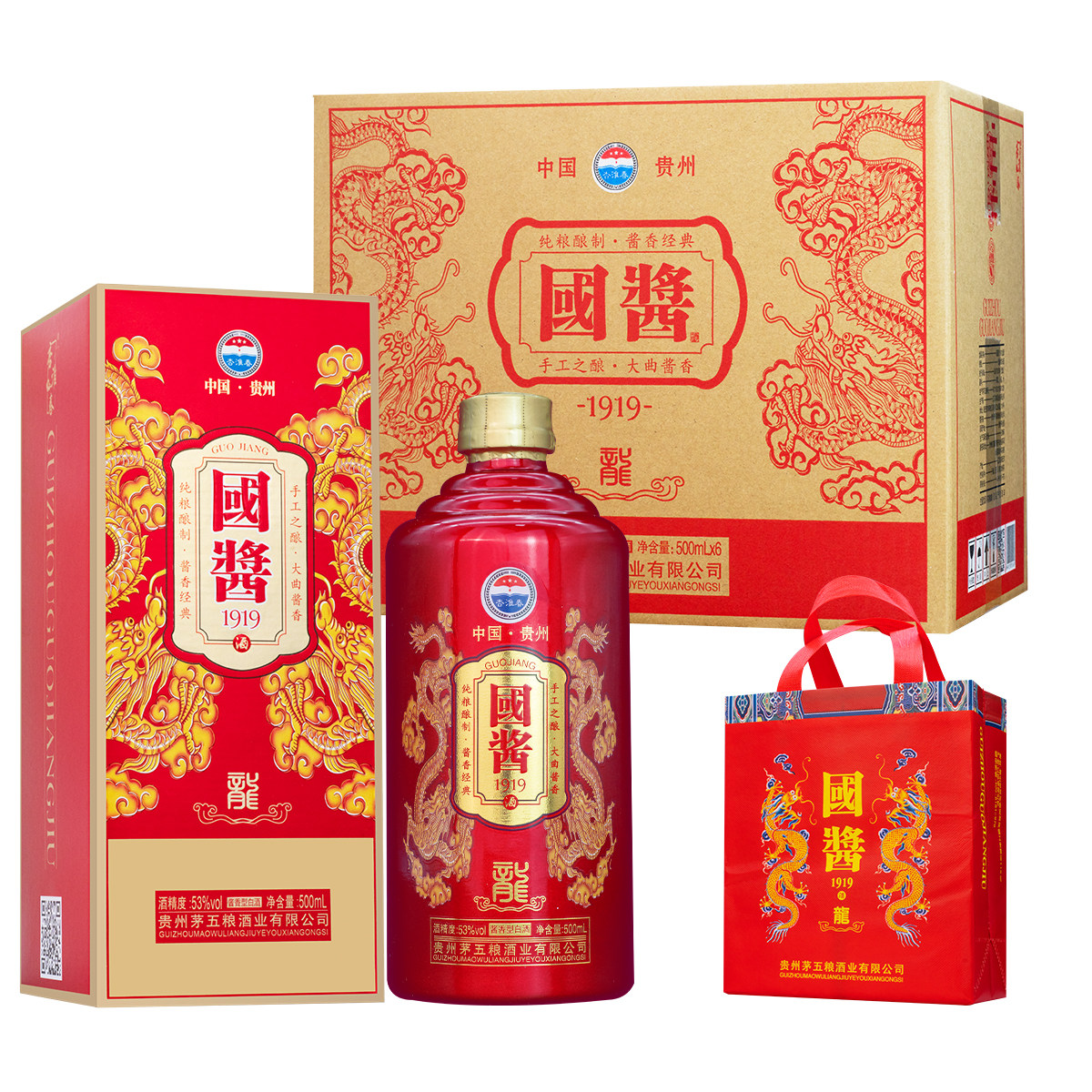 📚 国酱1919酱香型酒纯粮食53度白酒原浆坤沙老酒整箱6瓶特价礼盒装