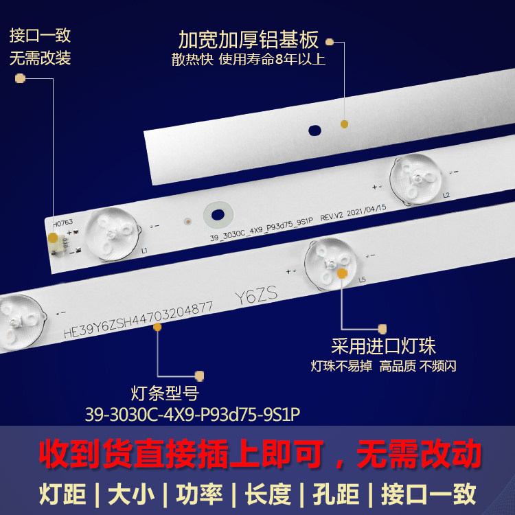 📚 适用海信LED39S30 LED39K20D灯条Hisense_39_3030C_4X9 _P93d75-9