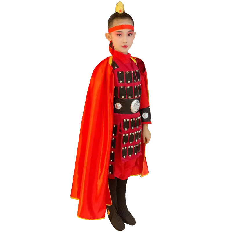 📚 古装士兵盔甲演出服儿童花木兰女将演绎岳飞满江红朗诵夺帅表演服