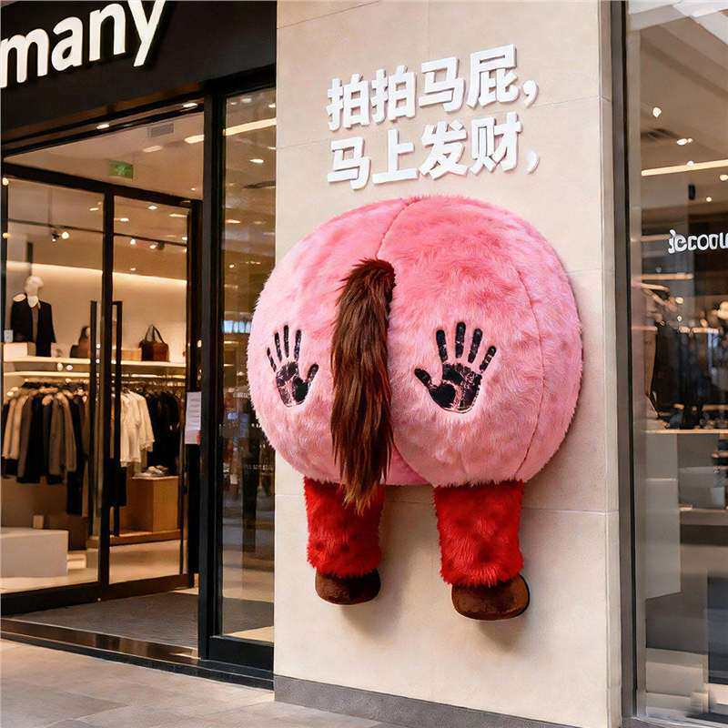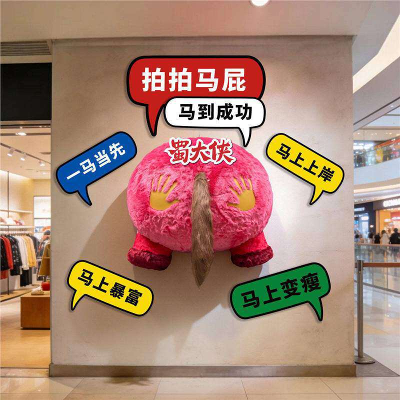 📚 拍马屁打卡墙道具马屁股彩虹美陈装置2026年马年毛绒布商场网红店