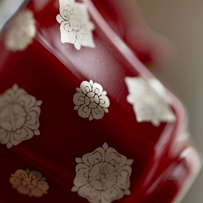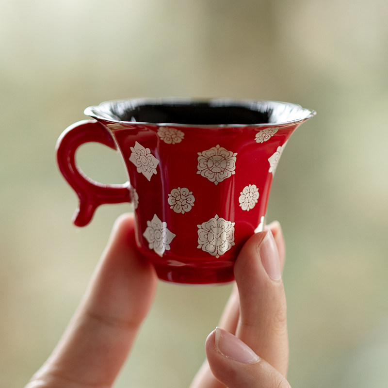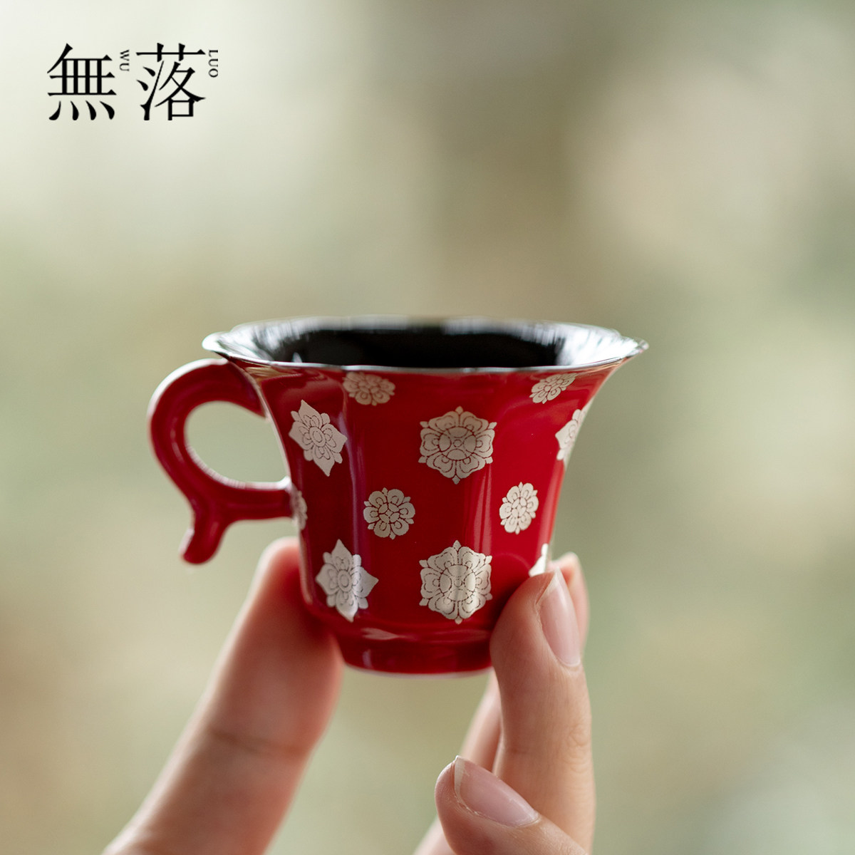 📚 无落错金陶瓷主人杯带把手茶具故宫红小茶杯个人专用喝茶品茗杯
