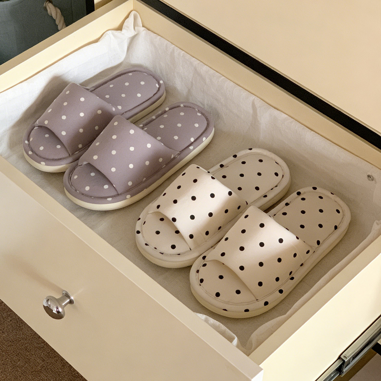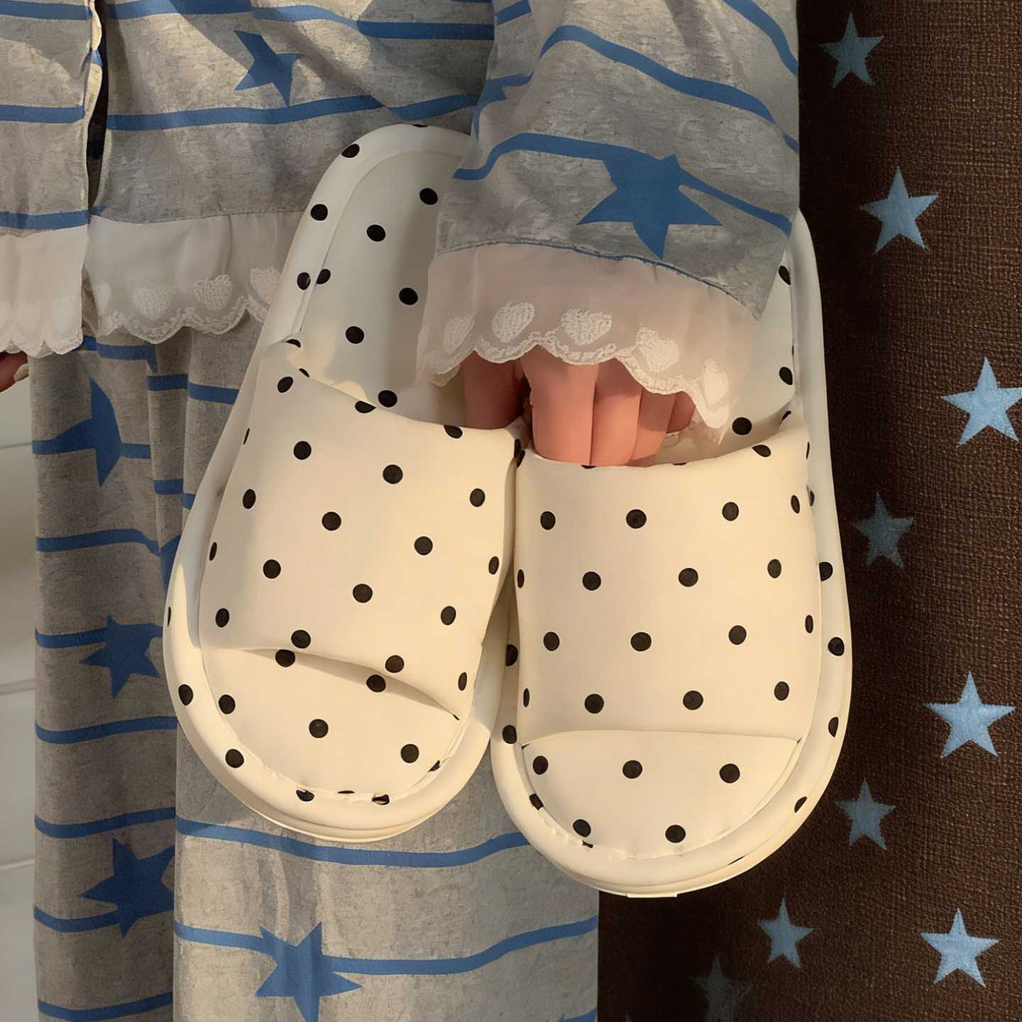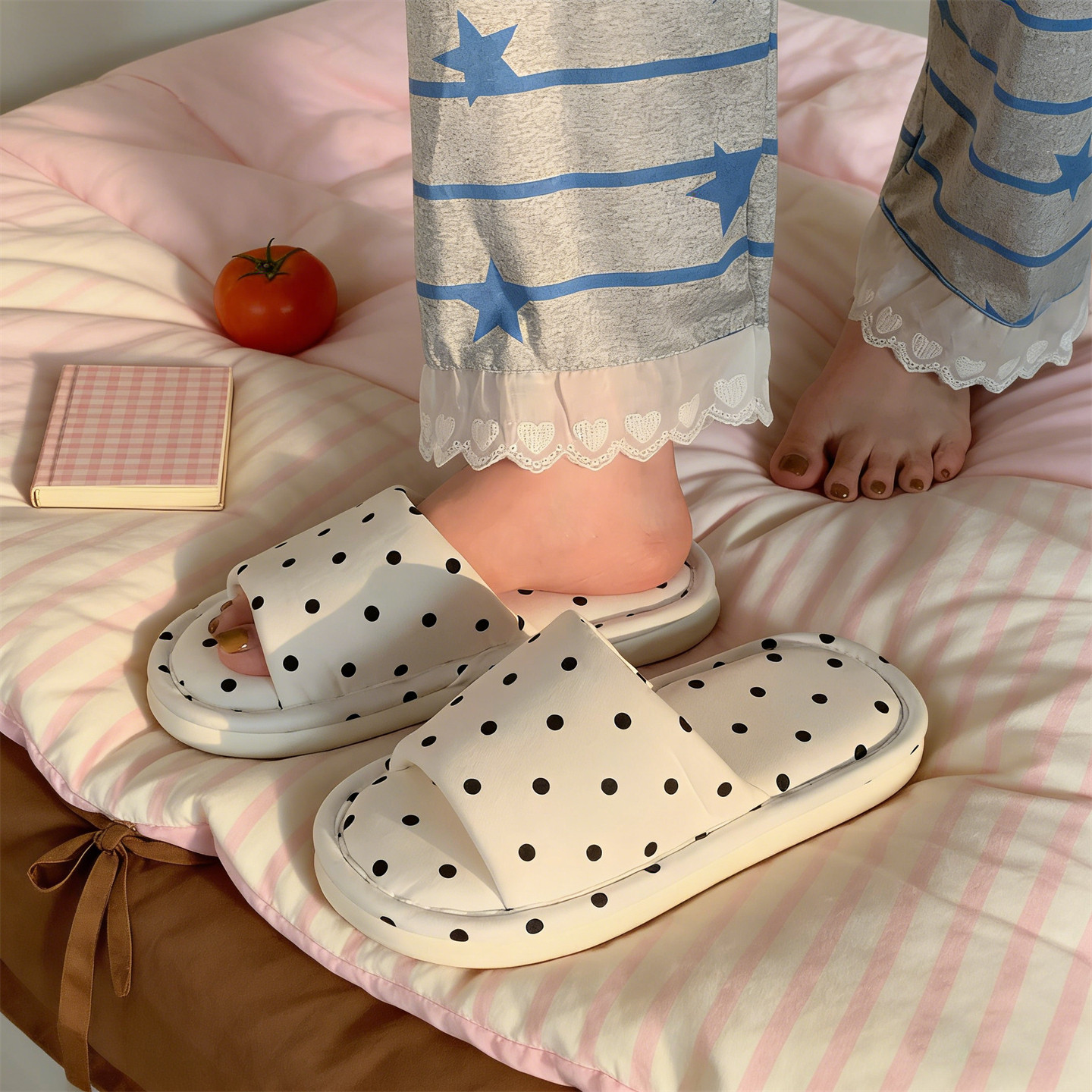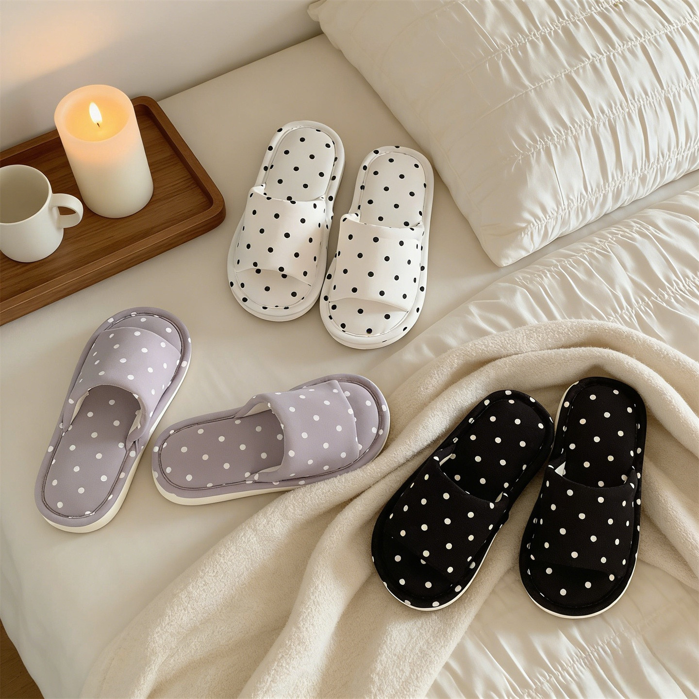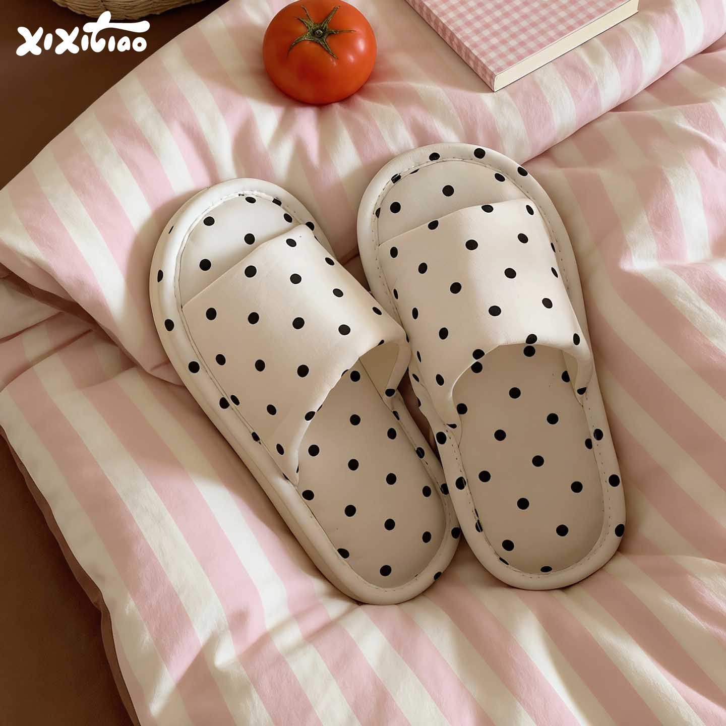 📚 细细条 韩系ins风波点棉布拖鞋女室内防滑软底四季通用卧室地板鞋