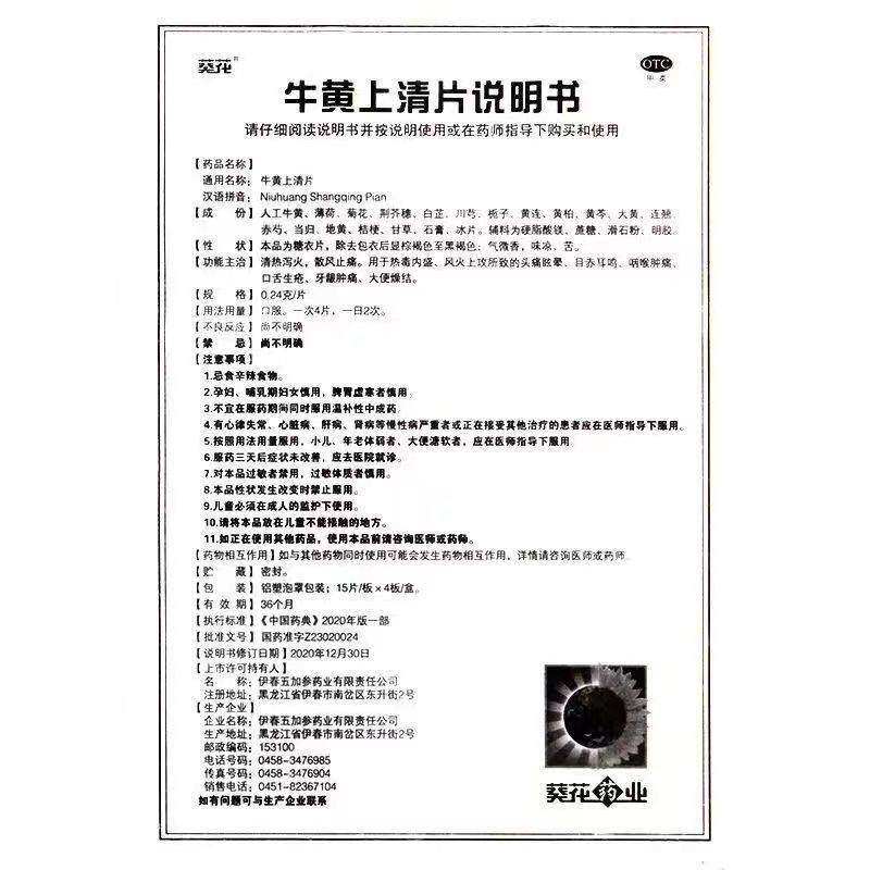 📚 葵花牛黄上清片60清热泻火热毒内盛头痛眩晕耳鸣咽喉肿痛牙龈肿痛