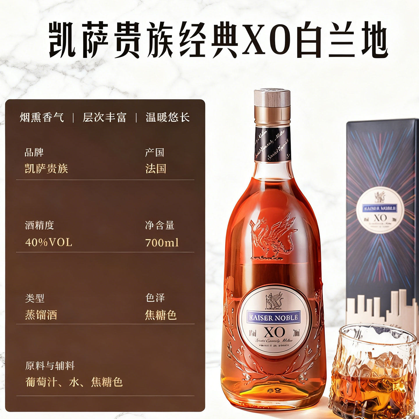 📚 法国进口凯萨贵族XO白兰地正品洋酒700ml礼盒装40度洋酒白兰地酒