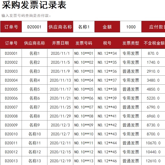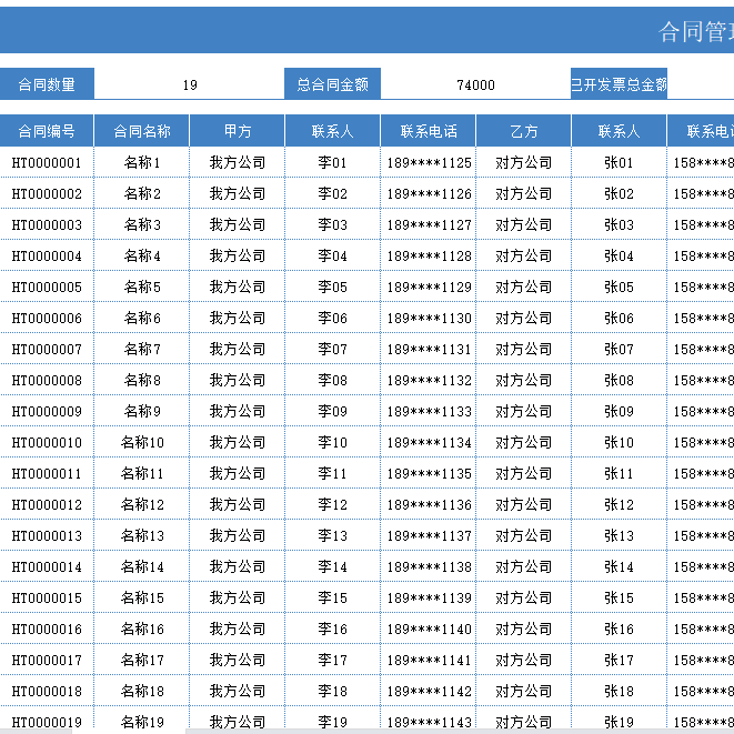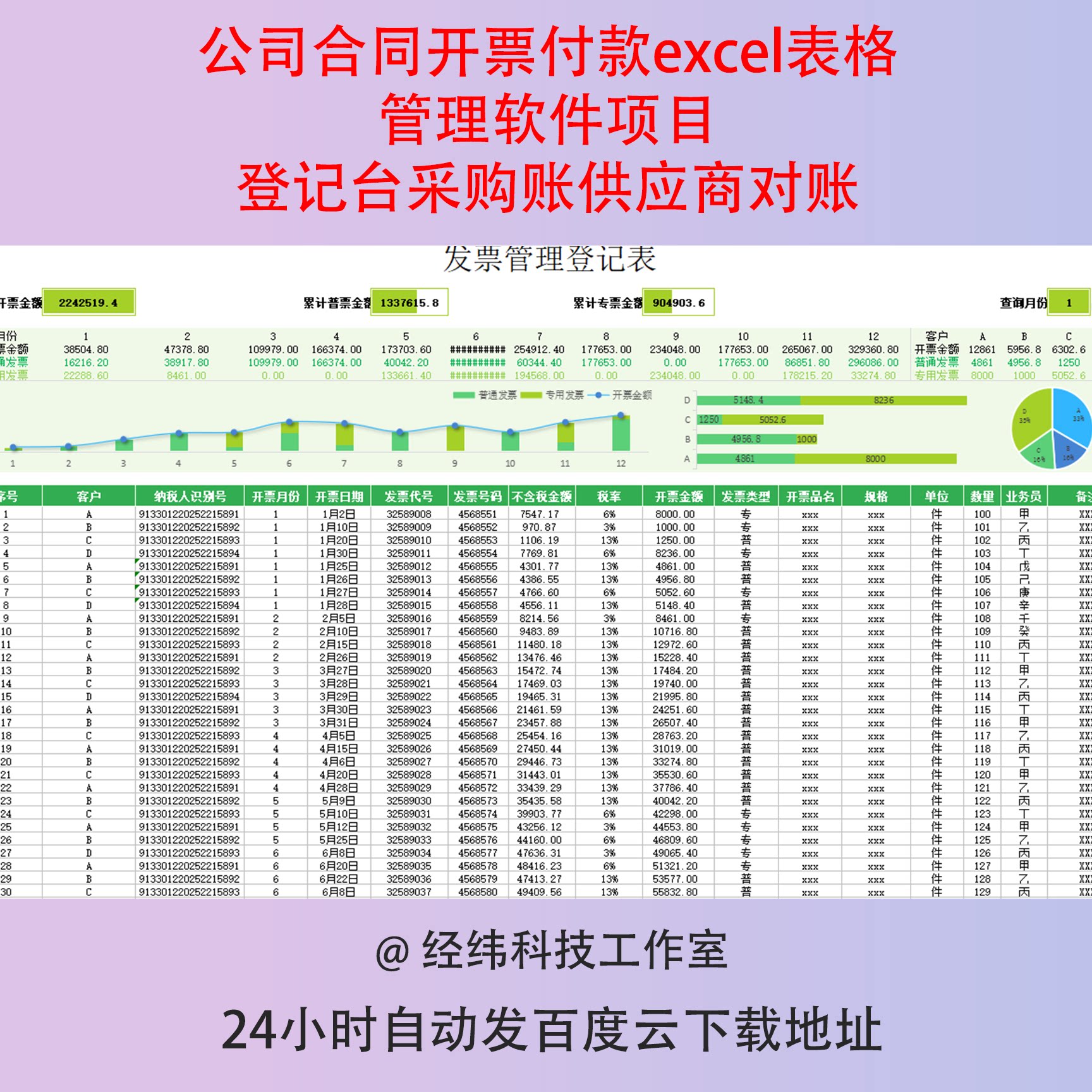 📚 公司合同开票付款excel表格管理软件项目登记台采购账供应商对账