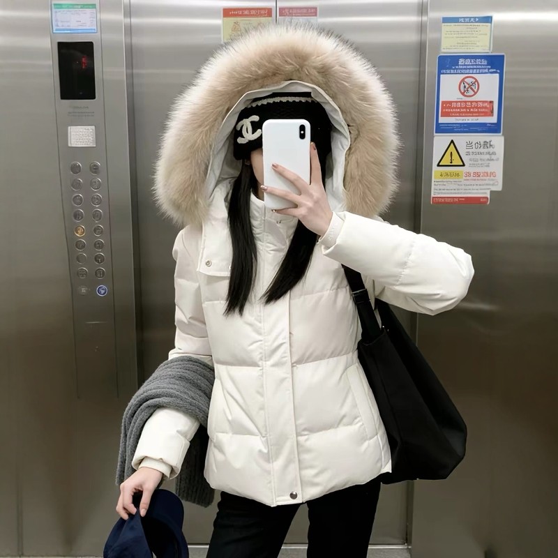 📚 显瘦羽绒棉服女大毛领2025年冬季新款收腰短款小个子加厚棉袄外套