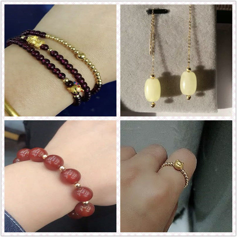 📚 18k小金珠diy配件珍珠纯黄金珠手串散珠隔珠硬定位珠加厚手工材料