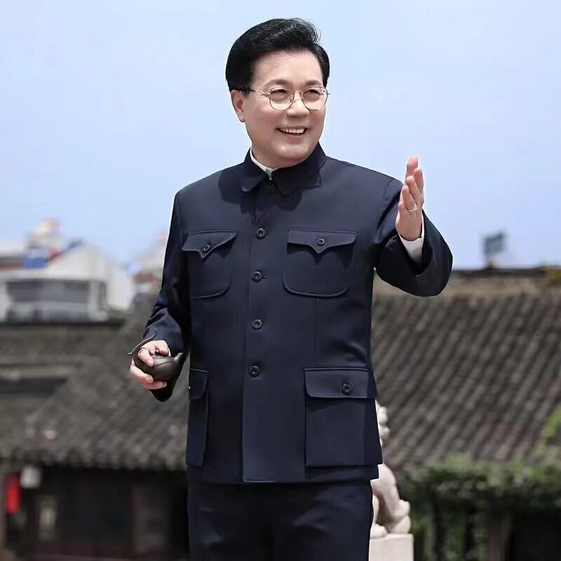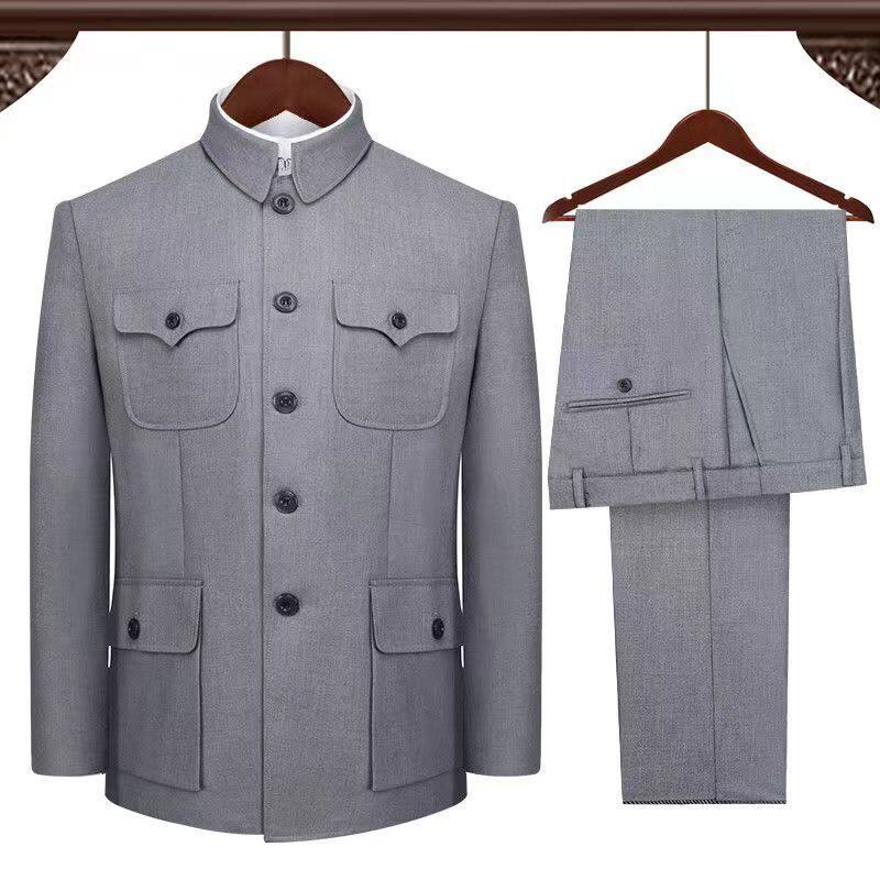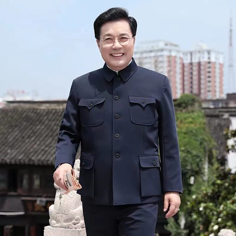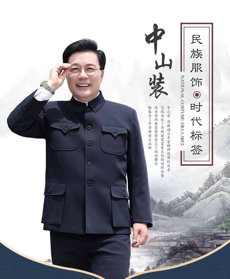📚 中老年中山装套装爷爷衣服老年人中山服装爸爸春秋冬季军便装