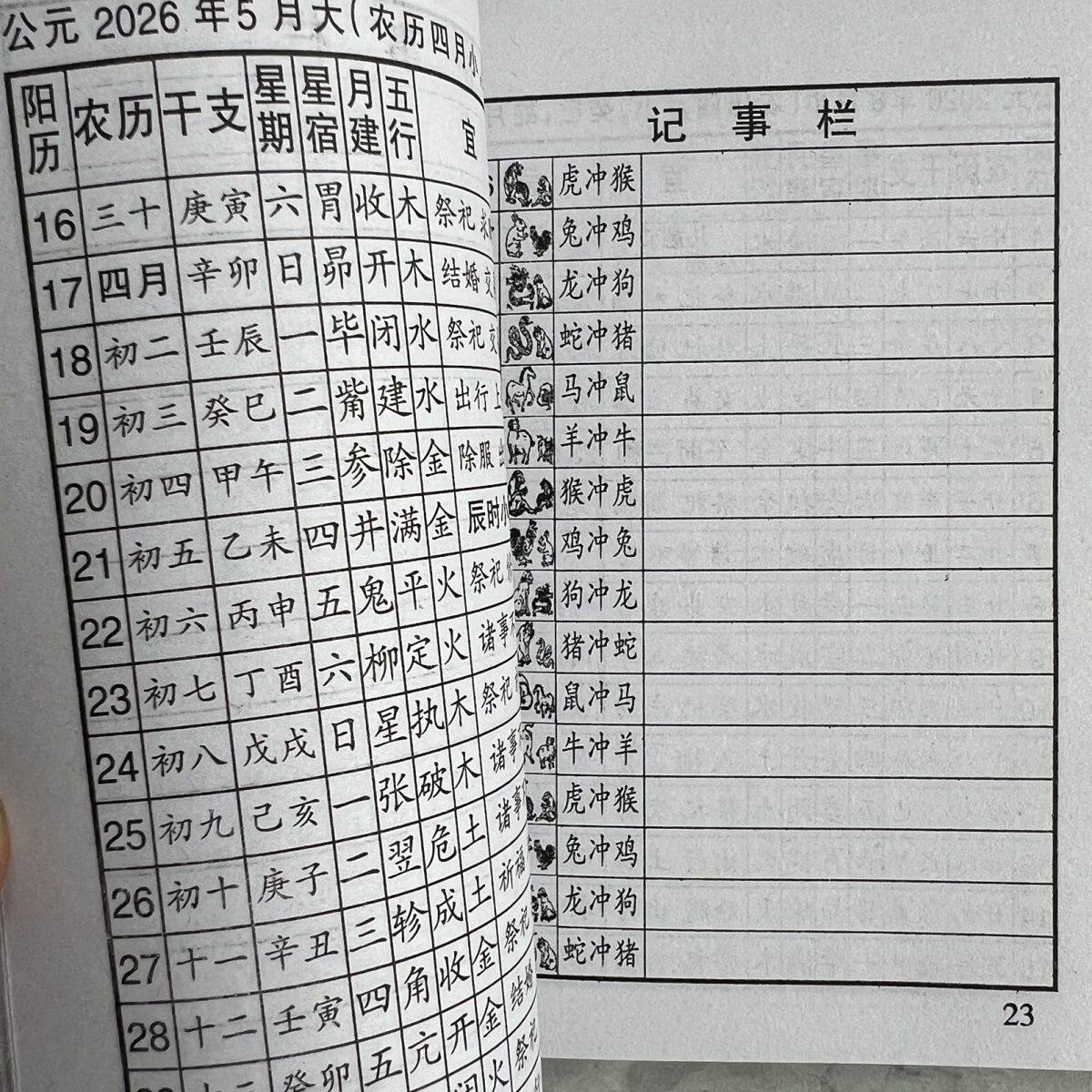 08¥ CZ005 XjX9UOjEYre¥ https://m.tb.cn/h.7vvfJcQ 2026年农家历马年历书老黄历皇历日历小册子笔记本日历百科知识 --------------------- 【原售价】4.8元 【现售价】4.8元。