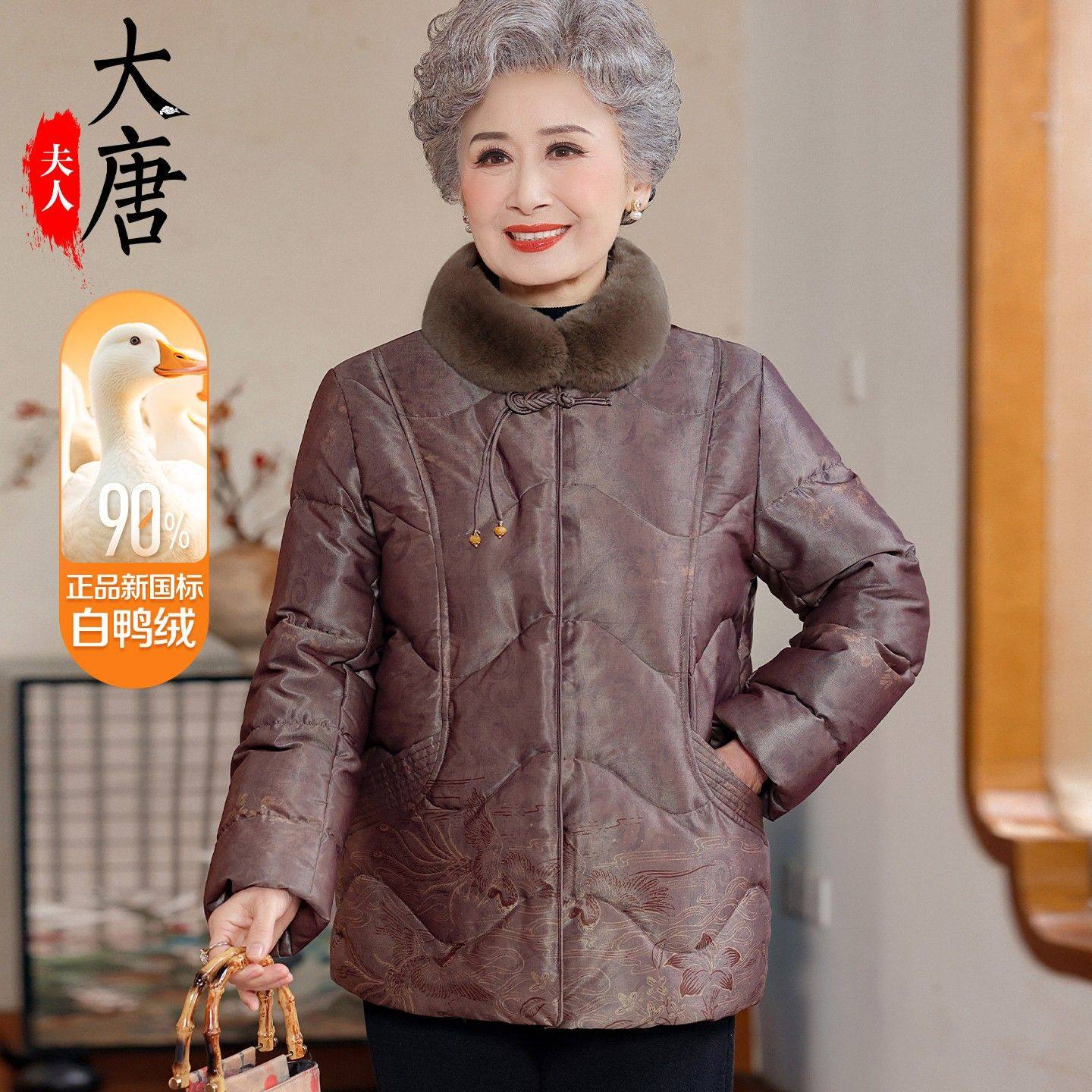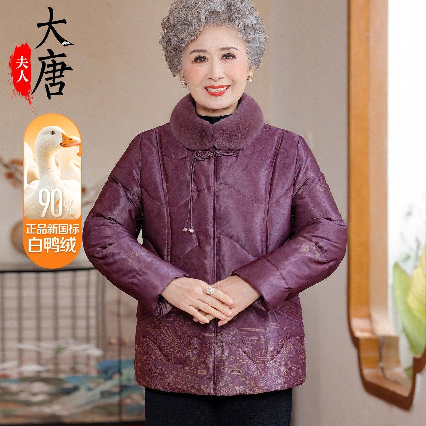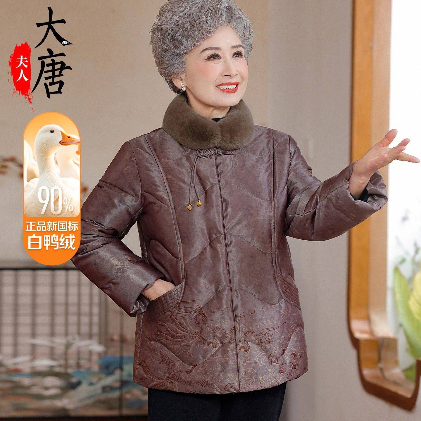 📚 奶奶冬装羽绒服白鸭绒新中式老年人女加绒加厚棉袄老太太中长款